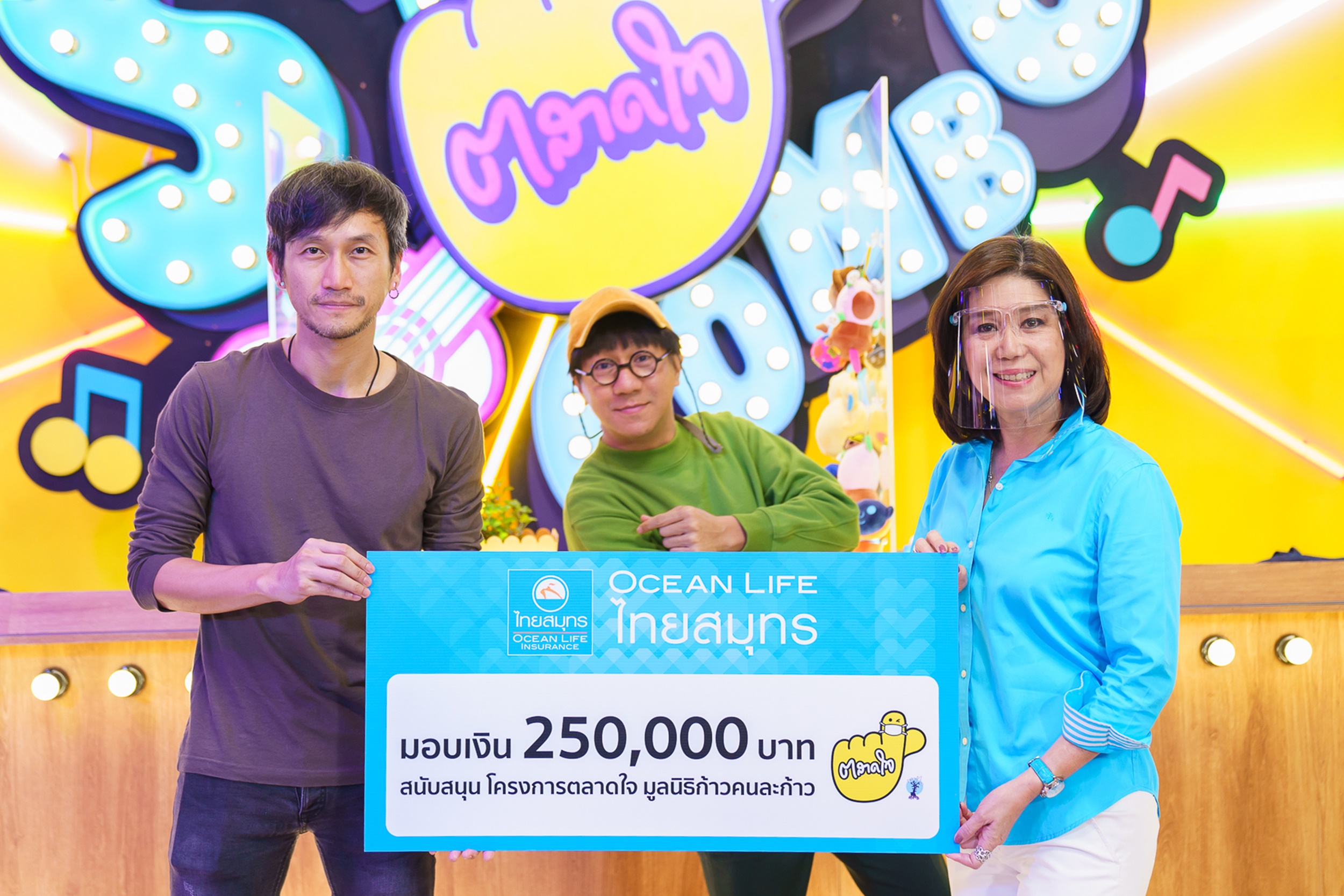 1 มิถุนายน 2563 : บมจ.ไทยสมุทรประกันชีวิต รักคือพลังของชีวิต โดย นุสรา (อัสสกุล) บัญญัติปิยพจน์ กรรมการผู้จัดการ ส่งมอบพลังความรักร่วมเป็นอีกก้าวหนึ่งที่จะนำพาคนไทยให้ผ่านพ้นวิกฤต ด้วยการร่วมสนับสนุน “ตลาดใจ String Combo” จัดโดยมูลนิธิก้าวคนละก้าว มอบเงิน 250,000 บาท ให้แก่ คุณตูน อาทิวราห์ คงมาลัย และคุณโน๊ต อุดม แต้พานิช เพื่อนำไปจัดซื้ออุปกรณ์สำหรับบุคลากรทางการแพทย์ได้ใช้ในสถานการณ์ COVID-19 โดยงานดังกล่าวเป็นงานบันเทิงมหากุศลที่รวมศิลปินทั่วฟ้าเมืองไทยร่วม LIVE สด สร้างความสนุกส่งให้คนไทยผ่านหน้าจอกันแบบฟรี ๆ และยังเปิดให้ประชาชนได้ร่วมทำบุญครั้งใหญ่นี้ด้วยกัน นอกจากนี้ OCEAN LIFE ไทยสมุทร ยังมีกิจกรรมแจกเสื้อตลาดใจให้กับผู้ร่วมบริจาคอีกด้วย ![]()