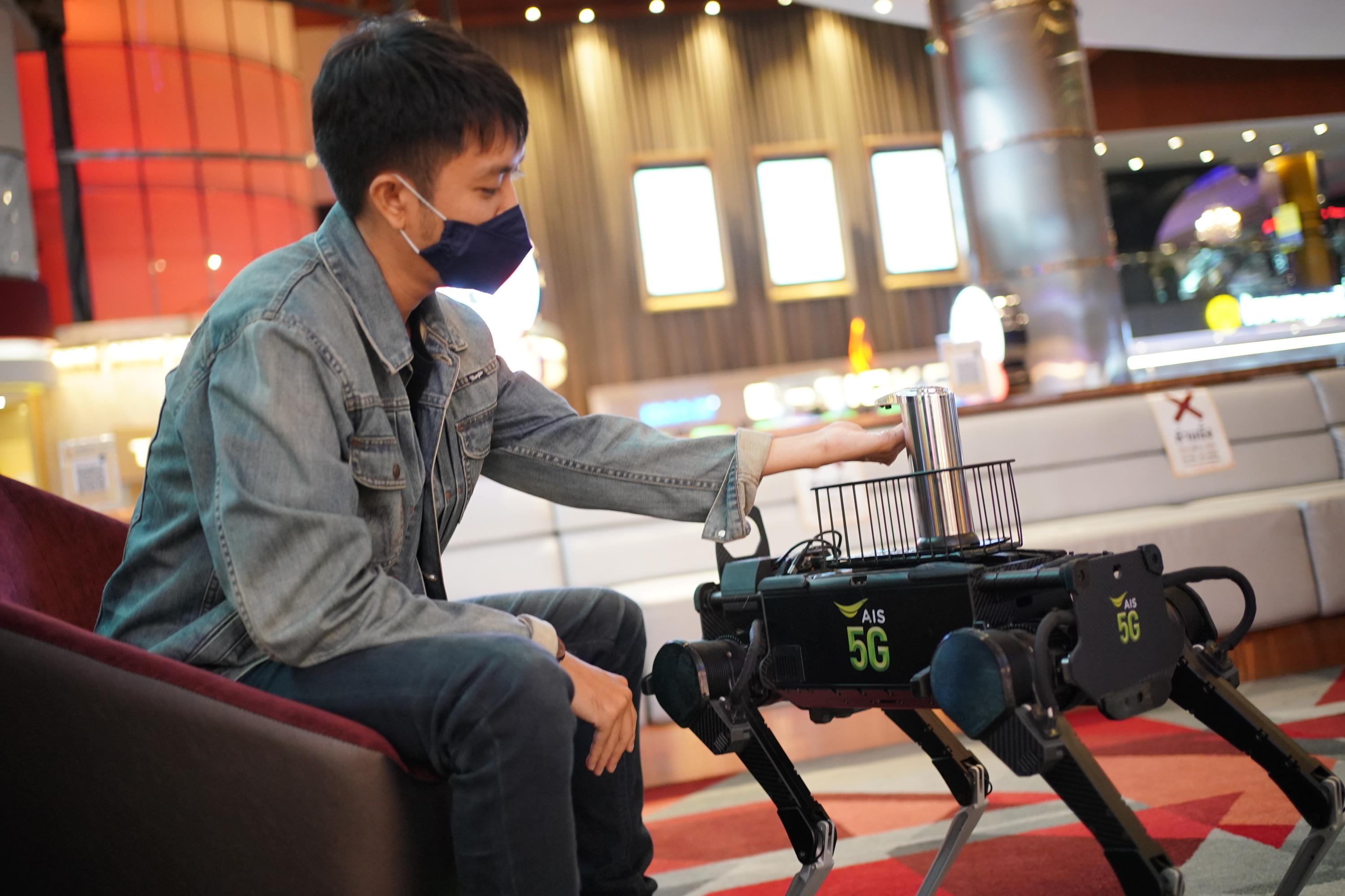 · หุ่นยนต์ AIS K9 บริการเจลแอลกอฮอล์ รอบๆ พื้นที่โรงภาพยนตร์
