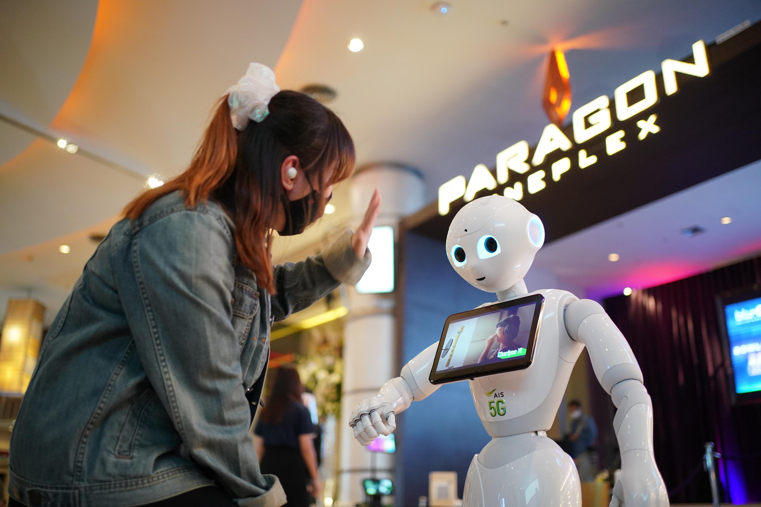 2. นำหุ่นยนต์อัจฉริยะ ช่วยปฏิบัติหน้าที่ในการคัดกรอง ตรวจวัดอุณหภูมิ และดูแลสุขอนามัยได้อย่างรวดเร็ว มีความแม่นยำสูง เพื่อลดการสัมผัสใกล้ชิด และป้องกันการแพร่ระบาดของเชื้อไวรัส COVID-19 ภายในพื้นที่โรงภาพยนตร์ เริ่มต้นที่ พารากอน ซีนีเพล็กซ์ และไอคอน ซีเนคอนิค โดยหุ่นยนต์ที่จะมาช่วยดูแลคนไทย ได้แก่