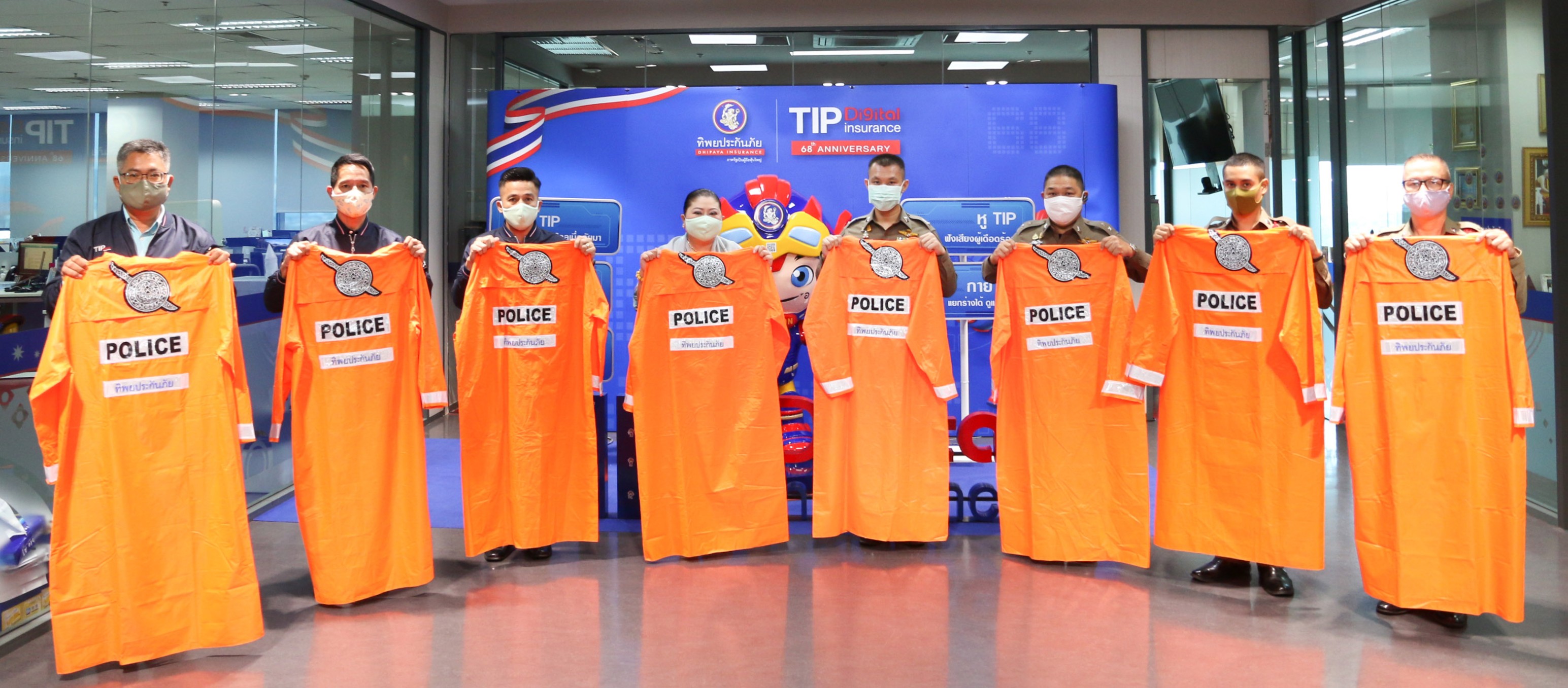 2 มิถุนายน 2563 : วิชชุดา ไตรธรรม ที่ปรึกษากรรมการผู้จัดการใหญ่ พร้อมด้วย ศุภกิจ จิตร์เพิ่มพูลผล รก.ผอ.ฝ่ายสื่อสารองค์กรและ CSR บมจ.ทิพยประกันภัย มอบเสื้อกันฝน ให้กับสถานีตำรวจนครบาลวังทองหลาง เพื่อใช้ในการปฏิบัติหน้าที่ และอำนวยความสะดวกให้กับประชาชน ตามโครงการทิพยประกันภัย ห่วงใยทุกชีวิตในสังคม โดยมี พ.ต.ต.เดชา พรมโสภา สว.ป. สน.วังทองหลาง รับมอบ ณ อาคารทิพยประกันภัย สำนักงานใหญ่ พระราม 3 ![]()