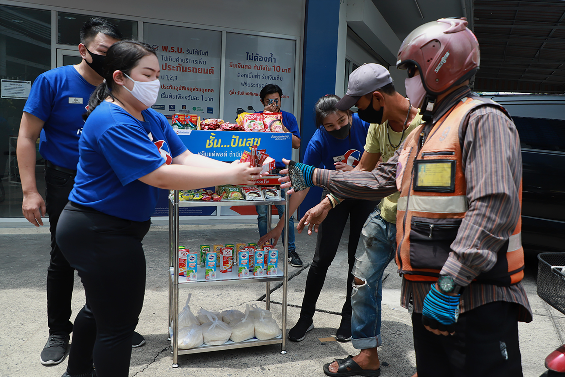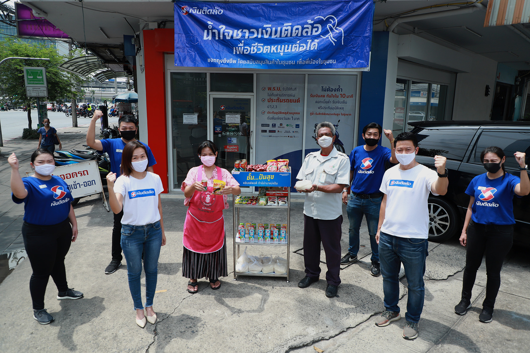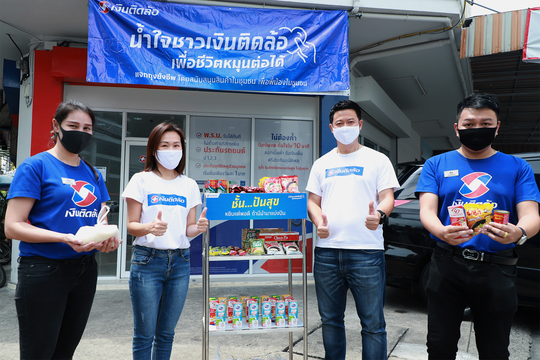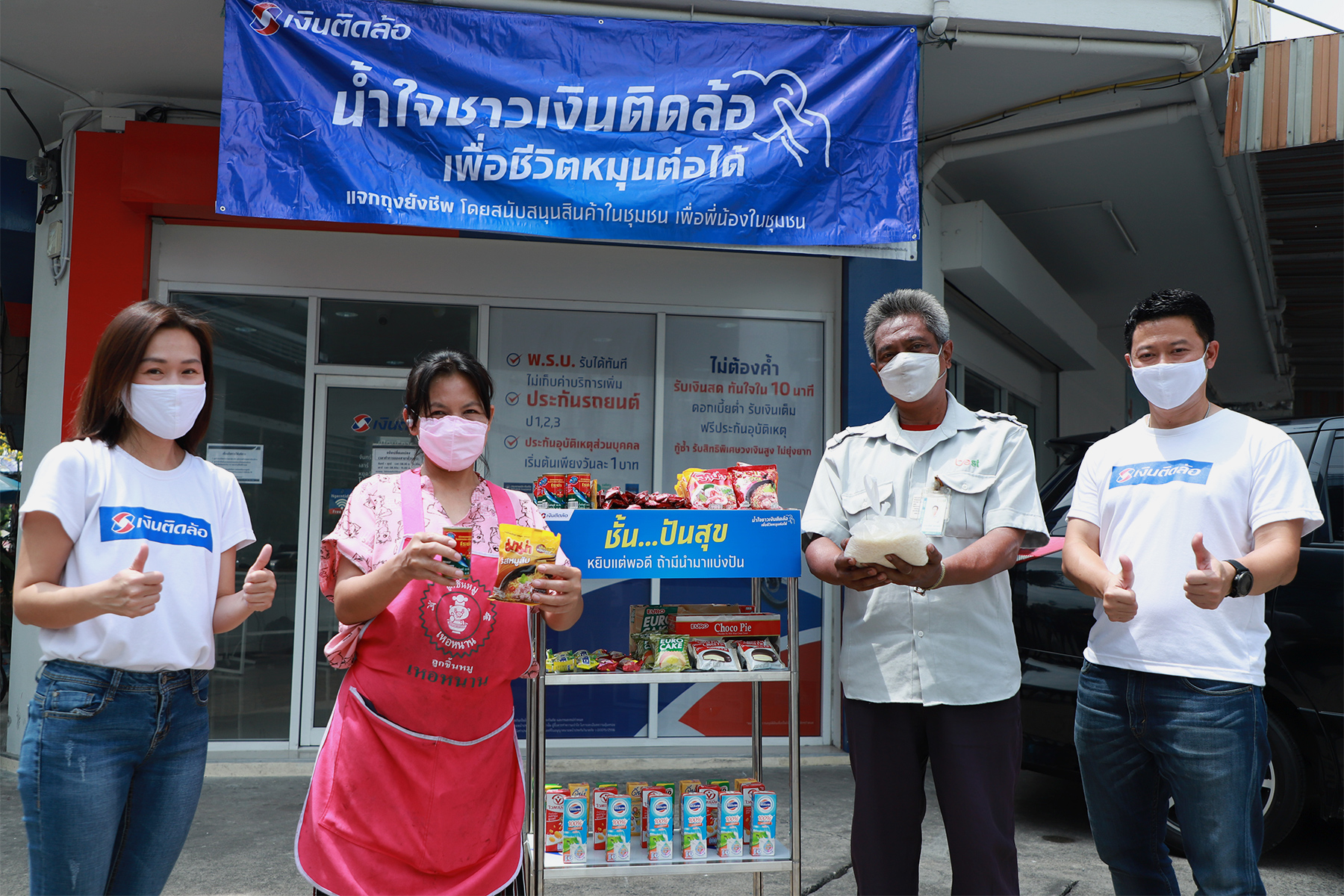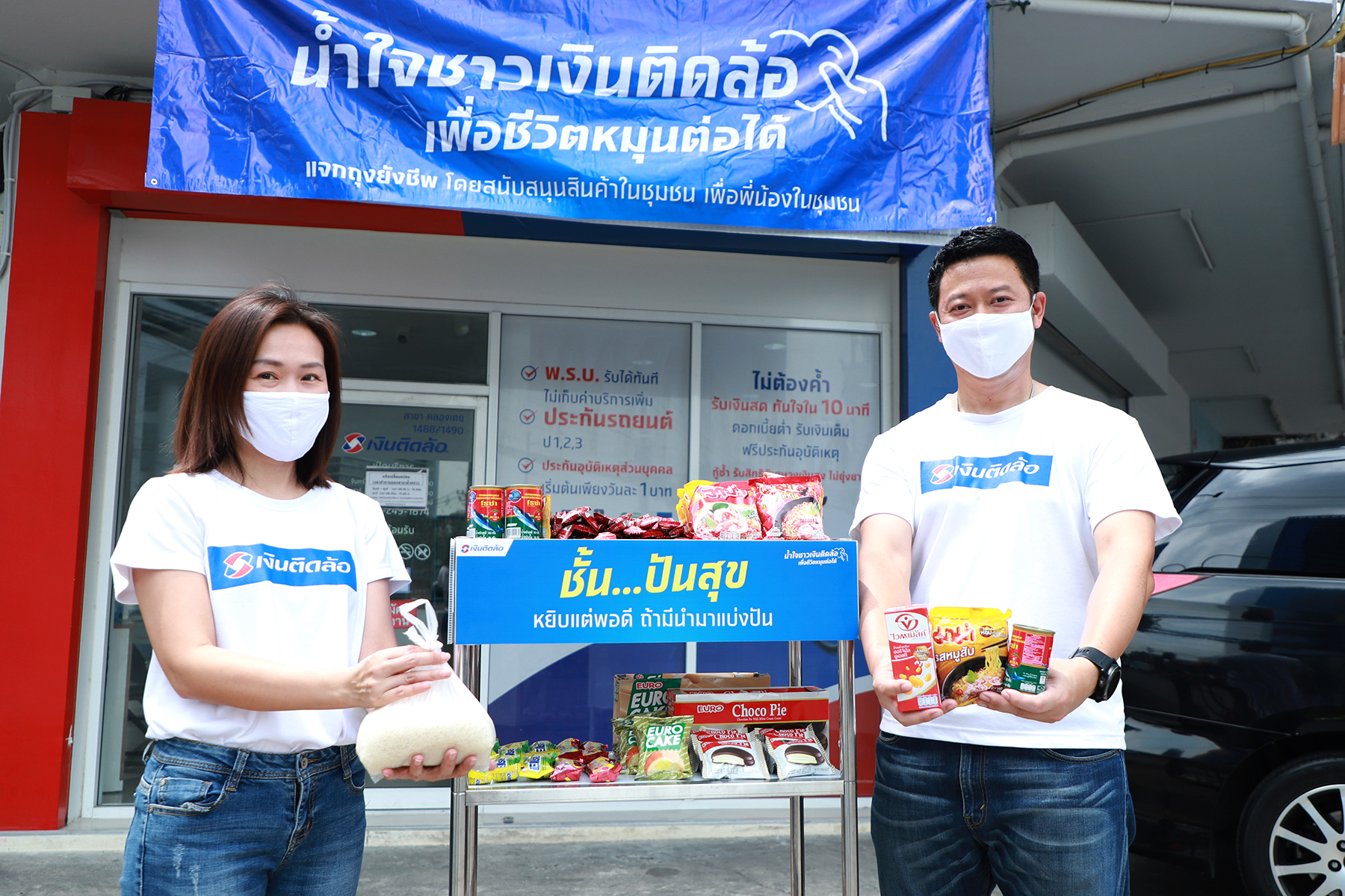 3 มิถุนายน 2563 : เมื่อเร็วๆนี้ พุฒิพงศ์ ภักดีพิพัฒน์กุล (ขวา) ผู้อำนวยการอาวุโส สายงานสื่อสารสาขาและพัฒนาศักยภาพผู้นำฝ่ายขาย และ นิภา วนิชวัฒน์ (ซ้าย) ผู้อำนวยการอาวุโส สายงานสนับสนุนธุรกิจและบริการกลาง บริษัท เงินติดล้อ จำกัด พร้อมด้วยพนักงานอาสาสมัครทำความดี ร่วมกันส่งมอบ “ชั้นปันสุข” เพื่อเป็นจุดมอบน้ำใจระหว่างผู้ให้และผู้รับ ภายใต้คอนเซ็ปต์ “หยิบแต่พอดี ถ้ามีนำมาแบ่งปัน” เพื่อให้ผู้คนสามารถนำข้าวสาร อาหารแห้ง และสิ่งของจำเป็นอื่น ๆ มาร่วมแบ่งปันให้กับผู้ที่ได้รับผลกระทบจากโควิด-19 ให้สามารถฟันฝ่าวิกฤตครั้งนี้ไปได้ ทั้งนี้ ปัจจุบัน “ชั้นปันสุข” ติดตั้งบริเวณสาขาเงินติดล้อไปแล้วมากกว่า 10 แห่ง ทั้งในเขตกรุงเทพฯ และปริมณฑล และมีแผนจะขยายจำนวนอย่างต่อเนื่อง