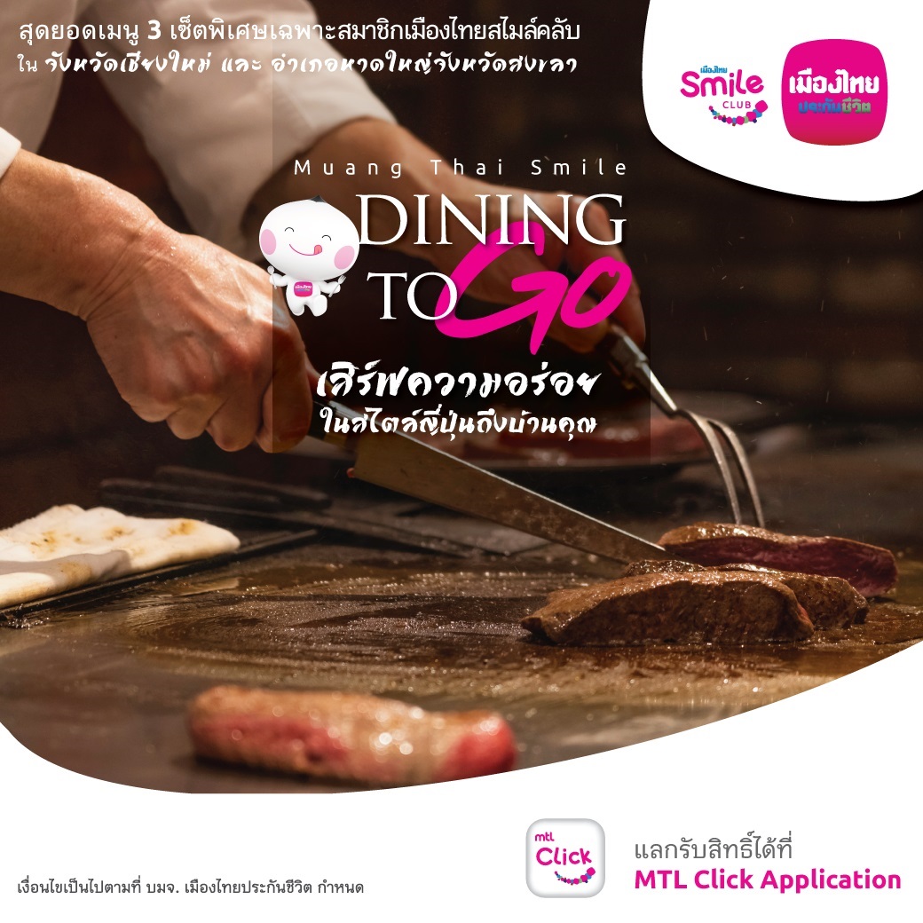 17 มิถุนายน 2563 : นายสาระ ล่ำซำ กรรมการผู้จัดการและประธานเจ้าหน้าที่บริหาร บริษัท เมืองไทยประกันชีวิต จำกัด (มหาชน) เปิดเผยว่า เพื่อตอกย้ำจุดยืนนโยบาย “MTL Everyday Life Partner” เมืองไทยสไมล์คลับ จัดกิจกรรม “เมืองไทย Smile Dining to go” เสิร์ฟความอร่อยในสไตล์ญี่ปุ่นสุดยอดเมนูพิเศษเฉพาะสำหรับสมาชิกเมืองไทยสไมล์คลับในพื้นที่เมืองเชียงใหม่ และหาดใหญ่ ที่ชื่นชอบการรับประทานอาหาร กับร้าน Cook with Love อาหารญี่ปุ่นชื่อดังในเมืองเชียงใหม่ ที่รังสรรค์ผ่านเมนูอาหารญี่ปุ่นคุณภาพเยี่ยมโดย เชฟไข่ ณัฎฐชัย ธาดาชนทัต ผู้คร่ำหวอดในวงการอาหารญี่ปุ่นมากกว่า10 ปี