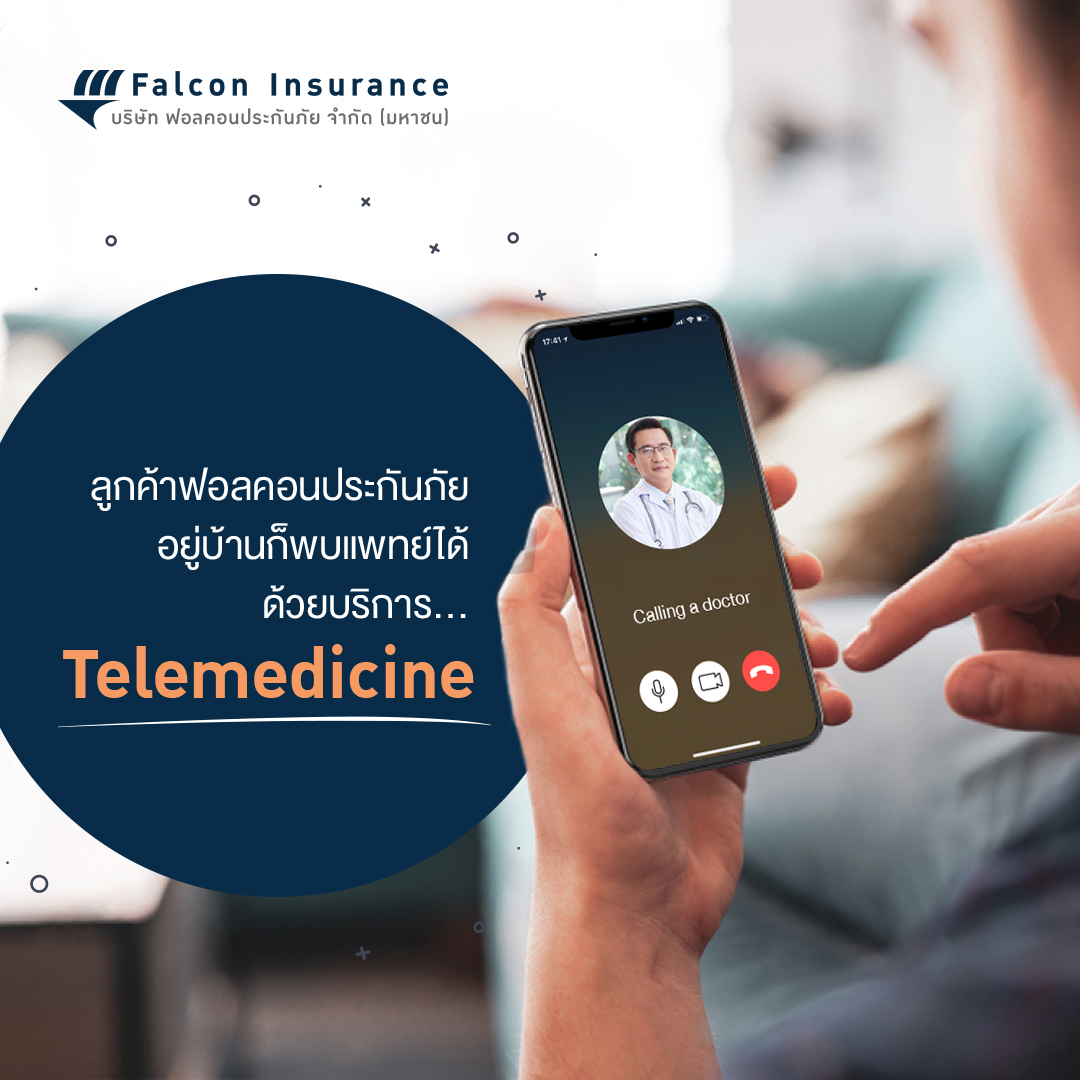 สำหรับลูกค้า ฟอลคอนประกันภัย ที่ถือกรมธรรม์ประกันสุขภาพ สามารถเลือกใช้บริการ “Telemedicine” หรือบริการโทรเวชกรรม โดยวิธีการรักษาจะใช้เทคโนโลยีที่สามารถพูดคุยกับทีมแพทย์ได้แบบ real-time ไม่ว่าจะเป็นการโทร แชท หรือวิดีโอคอล ทั้งนี้ขึ้นอยู่กับแต่ละโรงพยาบาลที่ให้บริการ โดยไม่ต้องสำรองจ่ายค่าบริการในการพบแพทย์และค่ายา สามารถเคลมจากความคุ้มครองกรณีเป็นผู้ป่วยนอก (OPD) ตามสิทธิประกันสุขภาพได้ทันที รวมถึงการบริการจัดส่งยาถึงที่บ้าน ยกเว้นค่าจัดส่งลูกค้าจะต้องรับผิดชอบเอง