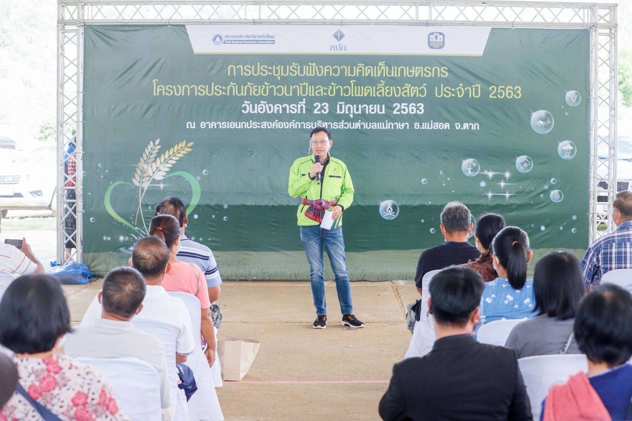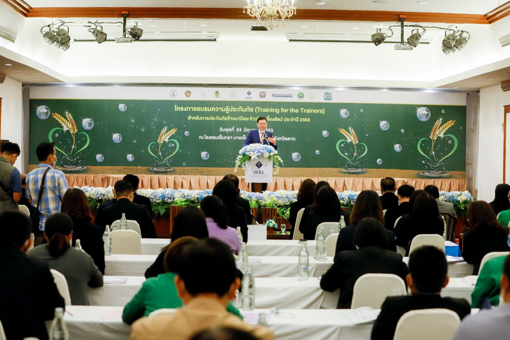 สำหรับวันที่ 24 มิถุนายน 2563 เป็นการจัดอบรมความรู้ด้านการประกันภัยให้กับเจ้าหน้าที่ของหน่วยงาน ต่างๆ ที่จะเป็นผู้ถ่ายทอดความรู้ต่อให้แก่เกษตรกร ตาม “โครงการอบรมความรู้ประกันภัย (Training for the Trainers) สำหรับการประกันภัยข้าวนาปีและข้าวโพดเลี้ยงสัตว์ ประจำปี 2563” ณ โรงแรมเซ็นทารา แม่สอด อำเภอแม่สอด จังหวัดตาก โดยมี นายวรานนท์ ยิ้มมงคล รองผู้ว่าราชการจังหวัดตาก ให้การต้อนรับ