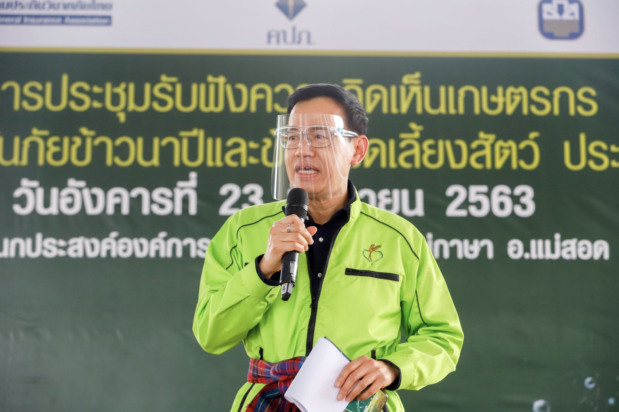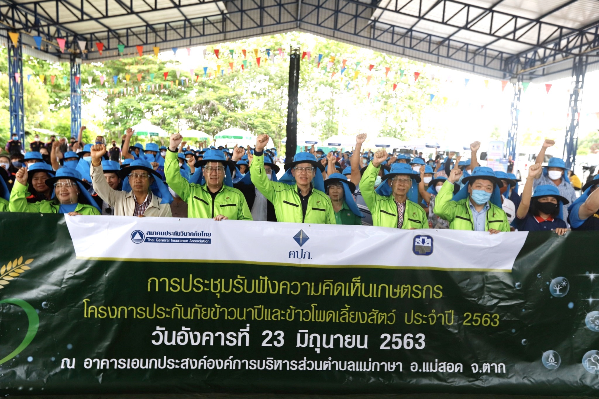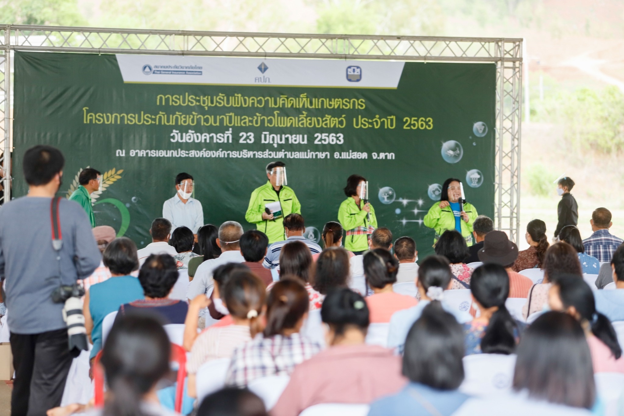 โดยเมื่อวันที่ 23 มิถุนายน 2563 คณะผู้บริหารสำนักงาน คปภ. คณะผู้บริหารสมาคมประกันวินาศภัยไทย และคณะวิทยากร ได้ลงพื้นที่พบปะเกษตรกร ณ อาคารเอนกประสงค์ องค์การบริหารส่วนตำบลแม่กาษา อำเภอแม่สอด จังหวัดตาก เพื่อชี้แจงรายละเอียดของโครงการฯ และรับทราบถึงสภาพปัญหา อุปสรรค ข้อคิดเห็น ตลอดจนข้อเสนอแนะของการทำประกันภัยข้าวนาปี ข้าวโพดเลี้ยงสัตว์ และการประกันภัยพืชชนิดอื่นๆ เช่น มันสำปะหลังถั่วเขียวผิวมัน อ้อย เป็นต้น