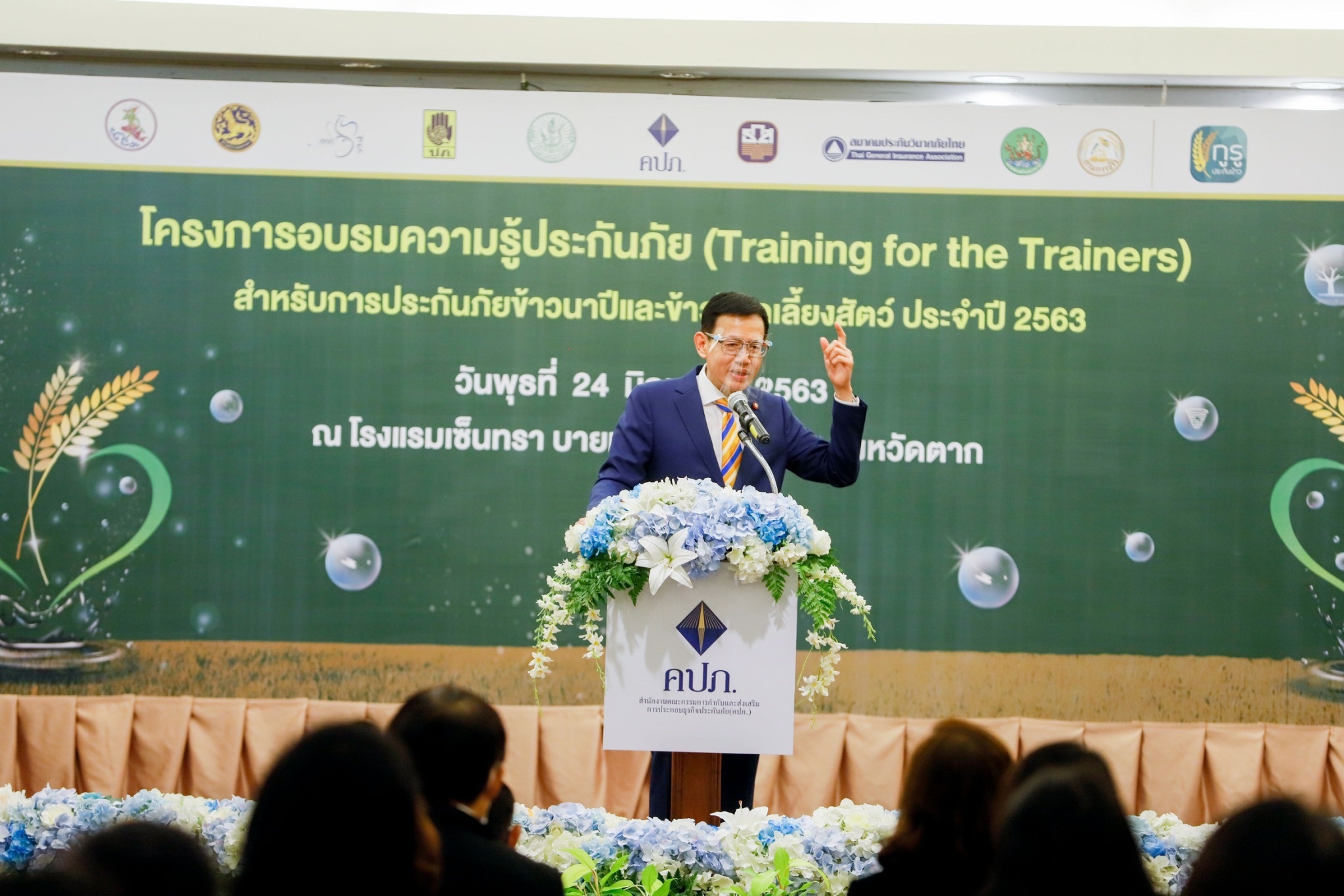 สำนักงาน คปภ. ในฐานะหน่วยงานกำกับและส่งเสริมการประกอบธุรกิจประกันภัย จึงได้เดินหน้าขับเคลื่อนโครงการ “Training for the Trainers” ประจำปี 2563 เพื่อเสริมสร้างความรู้ ความเข้าใจ ด้านการประกันภัย ข้าวนาปีและข้าวโพดเลี้ยงสัตว์ ให้แก่เจ้าหน้าที่ของหน่วยงานต่างๆ ที่เกี่ยวข้องที่จะไปเป็นผู้ถ่ายทอดความรู้ต่อให้กับเกษตรกร รวมทั้งผลักดันระบบการประกันภัยใช้เป็นเครื่องมือสำคัญในการบริหารความเสี่ยงภัยธรรมชาติที่อาจจะเกิดขึ้นต่อเกษตรกร ซึ่งปีนี้ได้กำหนดลงพื้นที่ตามโครงการฯ จำนวน 5 ครั้ง 5 จังหวัด ได้แก่ จังหวัดเพชรบุรี ราชบุรี ตาก กาฬสินธุ์ และพัทลุง โดยเปิดโครงการฯ ครั้งแรก เมื่อวันที่ 8-9 มิถุนายน 2563 ที่จังหวัดเพชรบุรี ครั้งที่ 2 เมื่อวันที่ 15-16 มิถุนายน 2563 ที่จังหวัดราชบุรี และครั้งนี้ที่จังหวัดตากถือเป็นการลงพื้นที่ครั้งที่ 3 ตามโครงการในปีนี้