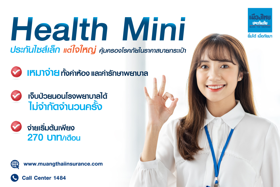 นางนวลพรรณ ล่ำซำ กรรมการผู้จัดการและประธานเจ้าหน้าที่บริหาร บริษัท เมืองไทยประกันภัย จำกัด (มหาชน) หรือ MTI เปิดเผยว่า ในภาวะเศรษฐกิจปัจจุบันที่ทุกคนต่างกังวลในวิถีชีวิตที่เปลี่ยนไป รวมถึงความกังวลในความไม่แน่นอนที่จะเกิดขึ้นในอนาคต เมืองไทยประกันภัยเข้าใจทุกคนจึงได้พัฒนา 2 ผลิตภัณฑ์ใหม่ ที่ให้ความคุ้มครองทั้งในด้านสุขภาพ ด้วยประกันภัย Health Mini ที่ให้ความคุ้มครองแบบเหมาจ่าย ทั้งค่าห้องและค่ารักษาพยาบาล