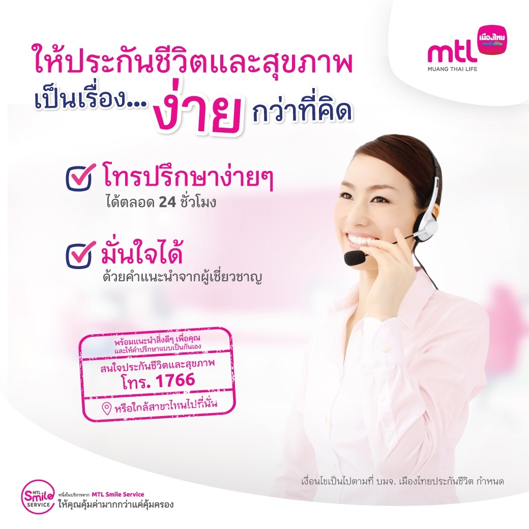 รวมไปถึงการให้คำแนะนำขั้นตอนการใช้งาน MTL Click รายละเอียดกิจกรรมและสิทธิประโยชน์ของเมืองไทยสไมล์คลับ ตลอดจนทีมงานให้บริการกับลูกค้าประกันกลุ่ม ทีมงานพิเศษที่มีใบอนุญาตในการให้คำปรึกษาเรื่องผลิตภัณฑ์ควบการลงทุนโดยเฉพาะ ทีมงานที่ทำหน้าที่โทรแจ้งข้อมูลข่าวสาร และสิทธิประโยชน์ต่างๆ รวมถึงแจ้งเตือนการชำระเบี้ยประกันภัย หรือแม้แต่การโทรต้อนรับลูกค้าใหม่ (Welcome Call) เพื่อแจ้งรายละเอียดความคุ้มครอง และยืนยันข้อมูลของลูกค้า นอกจากนี้หากลูกค้าสนใจซื้อประกันชีวิตและสุขภาพ ก็สามารถโทรเข้ามาปรึกษาได้ทุกวัน ตลอด 24 ชั่วโมง