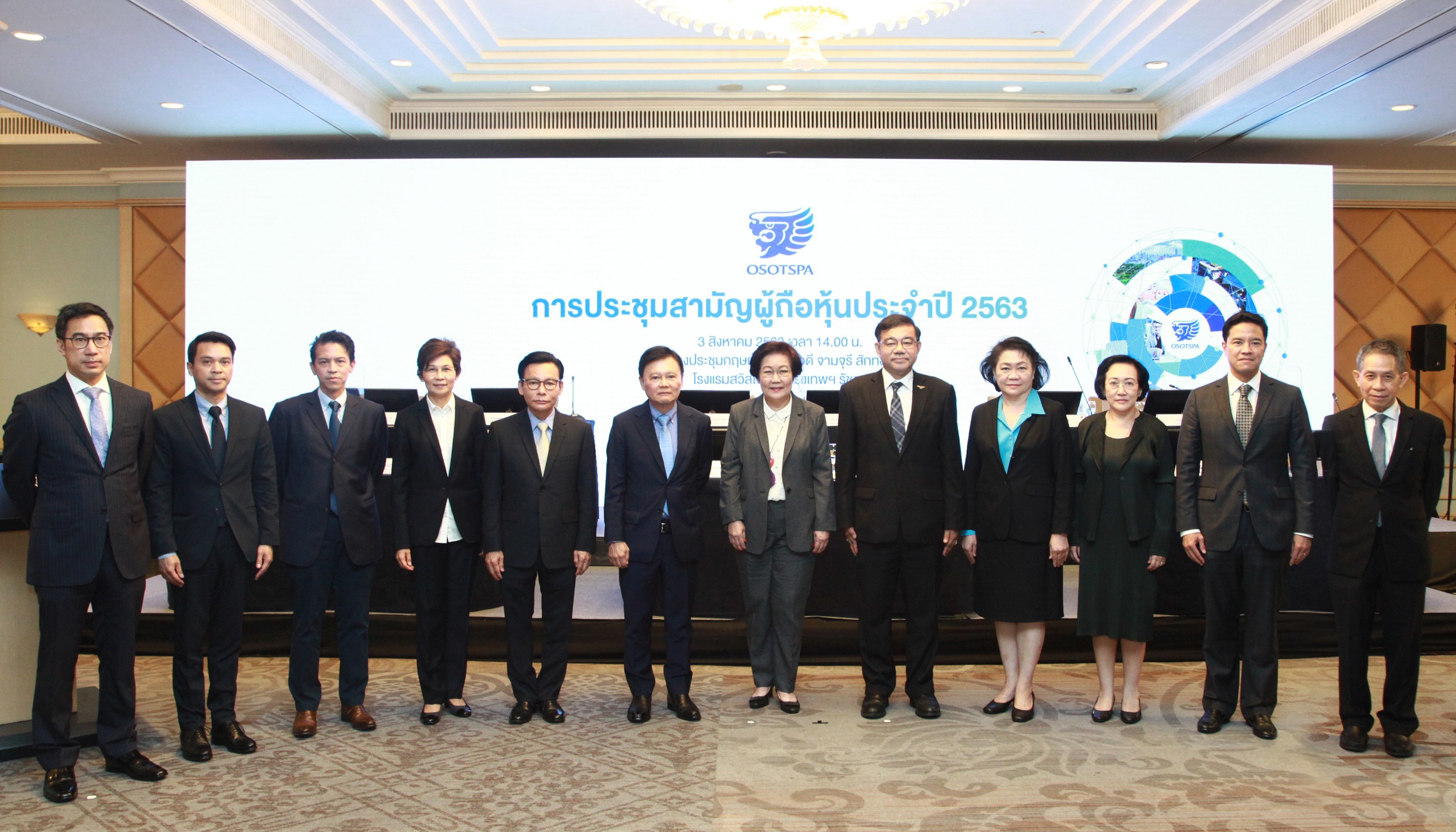 4 สิงหาคม 2563 : สมประสงค์ บุญยะชัย รองประธานกรรมการ (ที่ 8 จากซ้าย) กรรณิกา ชลิตอาภรณ์ ประธานคณะกรรมการบริหาร (ที่ 7 จากซ้าย) ธนา ไชยประสิทธิ์ รักษาการ CEO (ที่ 6 จากซ้าย) และวรรณิภา ภักดีบุตร กรรมการผู้จัดการใหญ่ (ที่ 4 จากซ้าย) พร้อมคณะกรรมการบริษัท โอสถสภา จำกัด (มหาชน) หรือ OSP เข้าร่วมประชุมสามัญผู้ถือหุ้นประจำปี 2563 ณ โรงแรมสวิสโฮเต็ล กรุงเทพฯ รัชดา พร้อมตอกย้ำความเชื่อมั่นแก่นักลงทุนด้วยนวัตกรรมและกลยุทธ์สร้างโอกาสทางธุรกิจในสถานการณ์โควิด-19 และเผยความคืบหน้าการขยายกำลังการผลิตตอบรับความต้องการสินค้าในไทยและภูมิภาค เพื่อสร้างการเติบโตอย่างแข็งแกร่งและยั่งยืน ![]()