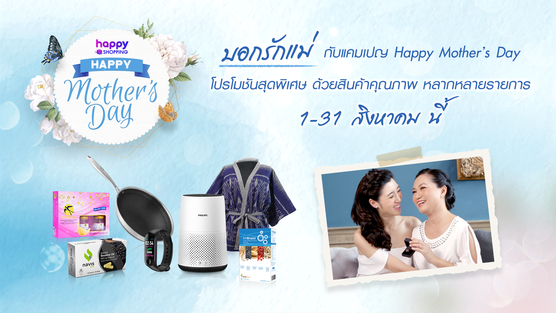 4 สิงหาคม 2563 : Happy Shopping ฉลองเดือนของแม่กับแคมเปญ Happy Mother’s Day ให้ทุกครอบครัวส่งต่อความห่วงใยบอกรักแม่ด้วยชุดของขวัญสุดพิเศษ ทั้งสินค้าเพื่อสุขภาพ ของใช้ในบ้าน สินค้าแฟชั่น ความงาม และอื่น ๆ อีกมากมาย ลดสูงสุดกว่า 80% ตลอดเดือนสิงหาคม 2563 อาทิ ผลิตภัณฑ์เสริมอาหาร นาวิสพลัส น้ำมันงาสกัด พิเศษ ราคา 2,490 บาท จากปกติ ราคา 9,600 บาท ผลิตภัณฑ์เสริมอาหาร มายไปรนี่ พิเศษ 2,590 บาท จากปกติ 5,800 บาท Bonback เครื่องดื่มรังนกสำเร็จรูปผสมคอลลาเจน สูตรปราศจากน้ำตาล พิเศษ 1,590 บาท จากปกติ 2,760 บาท