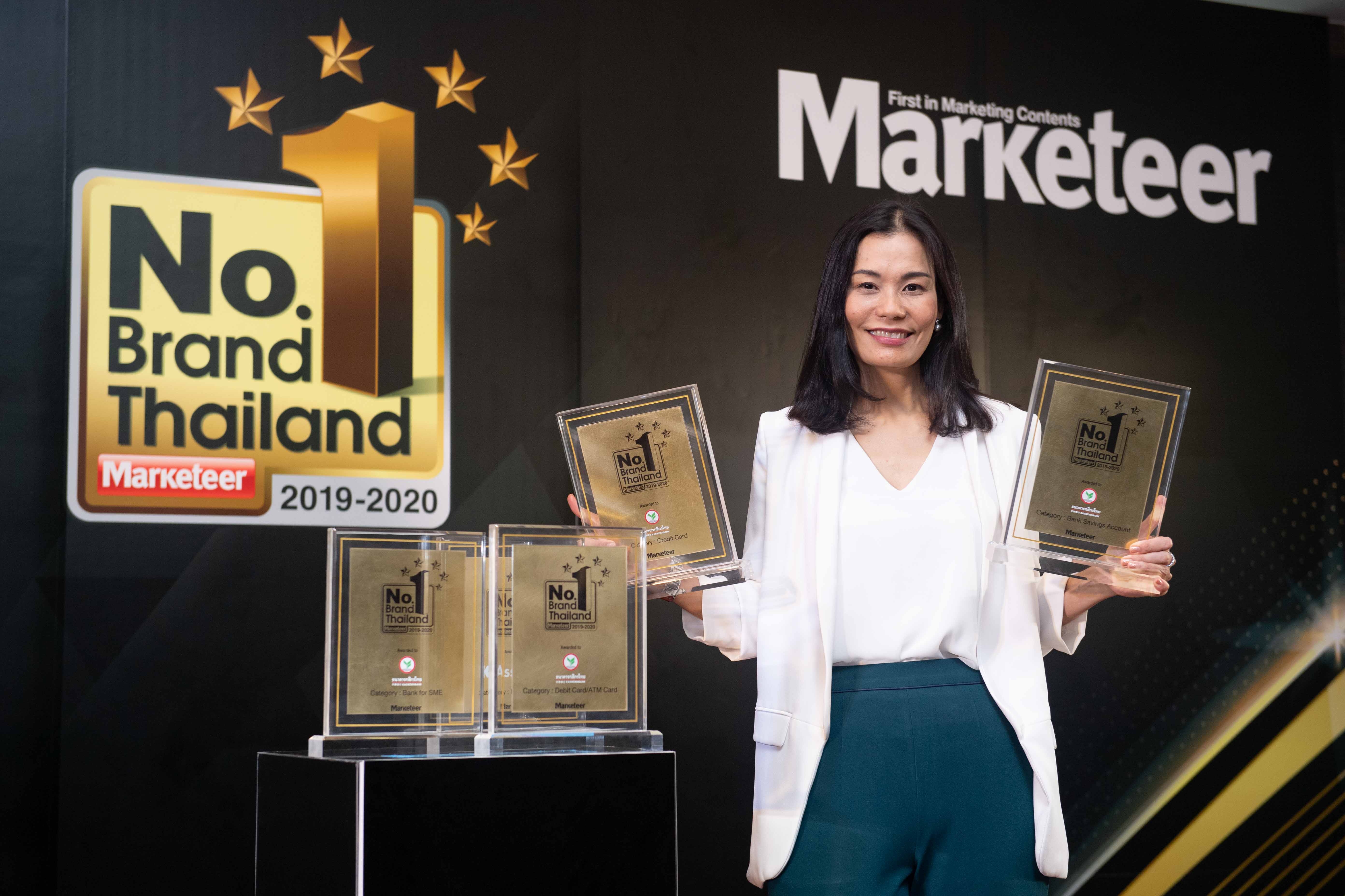 5 สิงหาคม 2563 : นางสาวจิตราวิณี วรรณกร ผู้ช่วยกรรมการผู้จัดการ ธนาคารกสิกรไทย เป็นผู้แทนธนาคารรับรางวัล No.1 Brand Thailand 2019-2020 แบรนด์ที่ได้รับความนิยมสูงสุดในใจผู้บริโภค 5 รางวัล ได้แก่ หมวดบัตรเครดิต บัตรเดบิต เงินฝาก เอสเอ็มอี และกองทุนรวม ซึ่งเป็นรางวัลที่นิตยสารมาร์เก็ตเทียร์ร่วมกับบริษัท เคเดนซ์ อินเตอร์เนชั่นแนล (ประเทศไทย) จำกัด ทำการสำรวจความนิยมในสินค้าและบริการประเภทต่างๆ ของผู้บริโภคชาวไทยทั่วประเทศ เพื่อเฟ้นหาแบรนด์ที่ได้รับความนิยมสูงสุดในใจผู้บริโภคทั้งด้านคุณภาพ การตลาด ตลอดจนการดูแลช่วยเหลือสังคมในด้านต่างๆ ซึ่งจัดโดยนิตยสารมาร์เก็ตเทียร์ ณ โรงแรมดิโอกุระ เพรสทีจ เมื่อเร็วๆ นี้ ![]()