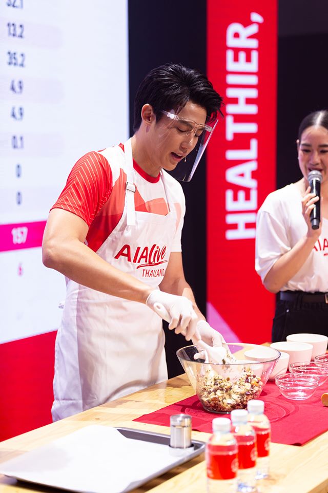 สำหรับกิจกรรม AIA Live ที่จัดขึ้นเมื่อวันอาทิตย์ที่ 2 สิงหาคมที่ผ่านมา เอไอเอ ประเทศไทย นำโดย หมาก-ปริญ สุภารัตน์ AIA Vitality Ambassador ได้ร่วมส่งต่อแรงบันดาลใจในการมีสุขภาพและชีวิตที่ดี ผ่านการสาธิตวิธีทำคุ้กกี้ธัญพืชสไตล์หมาก-ปริญ รวมถึงร่วมตอบคำถามจากผู้ชมทางบ้านเกี่ยวกับ “การใช้ชีวิตเพื่อสุขภาพและชีวิตที่ดีขึ้น”
