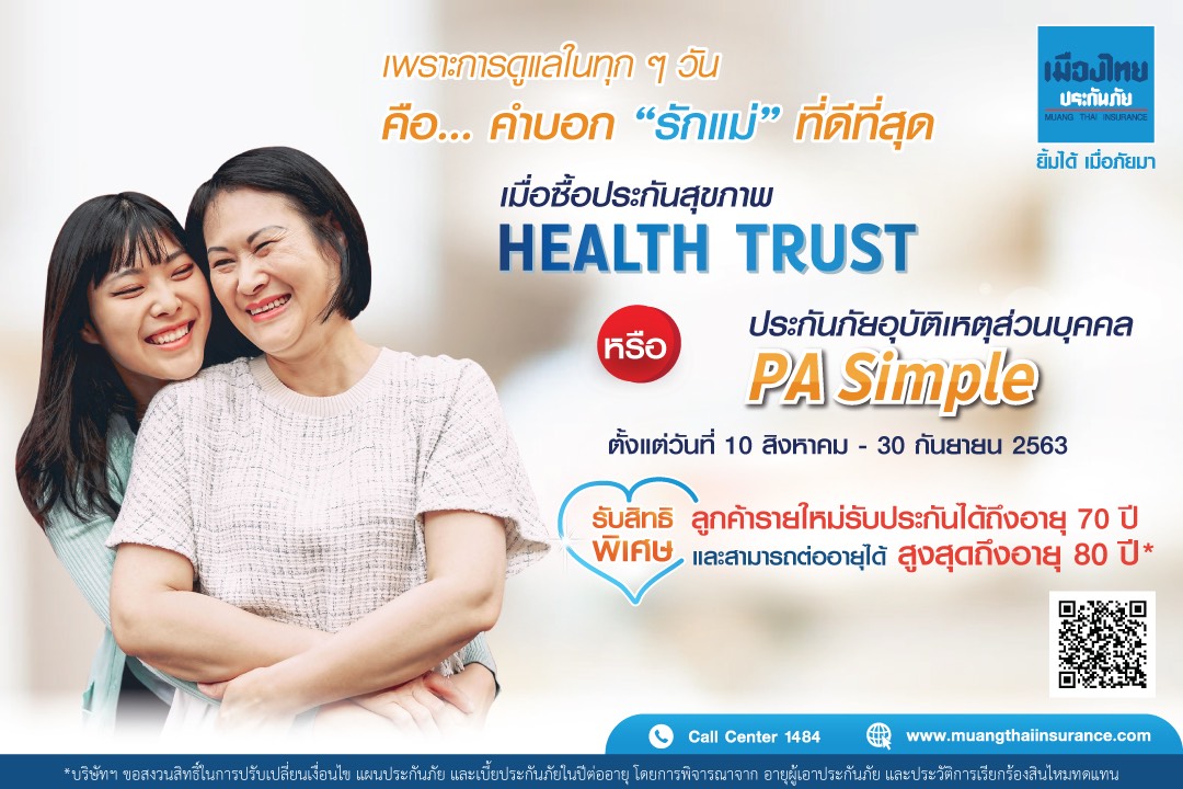 7 สิงหาคม 2563 : เมืองไทยประกันภัย ต้อนรับวันแม่ Happy Mother’s Day จัดโปรโมชั่นพิเศษในแคมเปญเชื่อแป้ง 2 ด้วยคอนเซ็ปท์ “การดูแลในทุกๆ วันคือ คำบอก “รักแม่” ที่ดีที่สุด” กับประกันภัย 2 รูปแบบ ที่จะเป็นของขวัญ และดูแลแม่ คนที่คุณรักในทุกวัน ผ่านประกันสุขภาพ Health Trust และประกันอุบัติเหตุส่วนบุคคล PA Simple เบี้ยประกันภัยต่อปีเริ่มต้นตั้งแต่ 2,700 บาทขึ้นไป รับทันทีโปรโมชั่นสิทธิพิเศษ 2 ต่อ ตั้งแต่วันที่ 10 สิงหาคม ถึง 30 กันยายน 2563 นี้