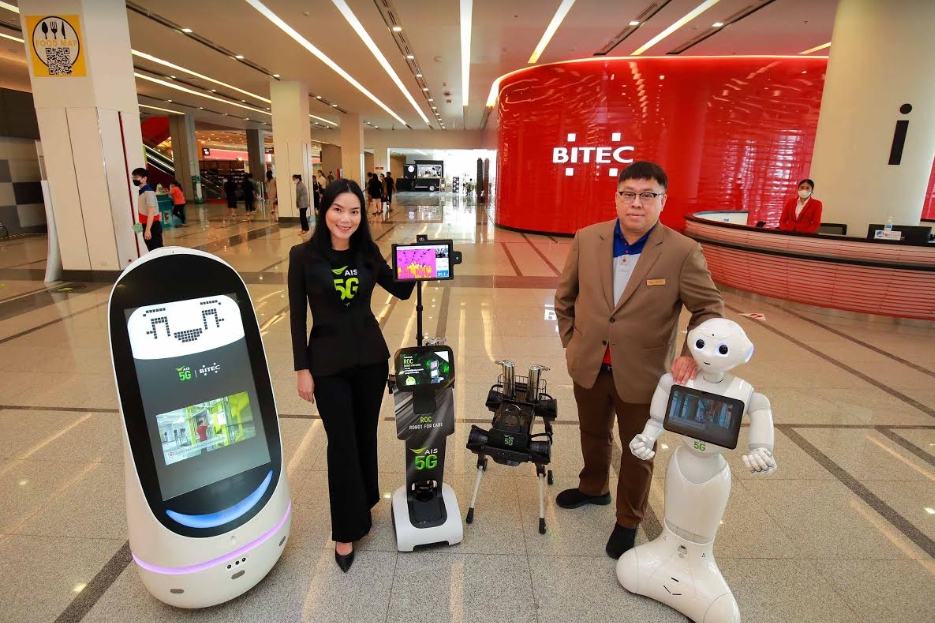 10 สิงหาคม 2563 : เอไอเอสผนึกศูนย์นิทรรศการและการประชุมไบเทค (BITEC) นำเทคโนโลยีดิจิทัลที่สอดคล้องกับไลฟ์สไตล์ยุค New Normal โดยเตรียมติดตั้ง 5G เสริม เพิ่มประสิทธิภาพการใช้งานของลูกค้าเอไอเอส และนำหุ่นยนต์อัจฉริยะ ซึ่งพัฒนาโดยทีมวิจัย AIS Robotic Lab อย่างหุ่นยนต์ ROC, K9, LISA และ PP ที่ทำงานบน LIVE Network 5G มาช่วยปฏิบัติหน้าที่ในการคัดกรอง ตรวจวัดอุณหภูมิ และดูแลสุขอนามัยได้อย่างรวดเร็ว มีความแม่นยำสูง เพื่อลดการสัมผัสใกล้ชิด และป้องกันการแพร่ระบาดของเชื้อไวรัส COVID-19 สร้างความเชื่อมั่นด้านสุขอนามัยให้กับผู้เกี่ยวข้องทุกส่วน พร้อมสนับสนุนการบริหารจัดการธุรกิจไมซ์ในประเทศไทยสู่การจัดงานวิถีใหม่นับจากนี้ไป