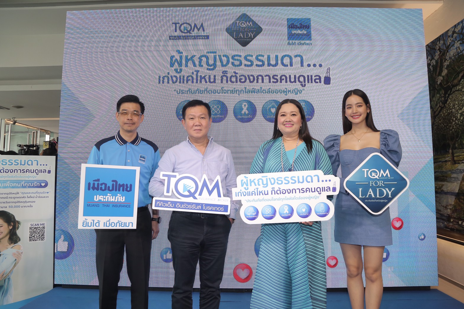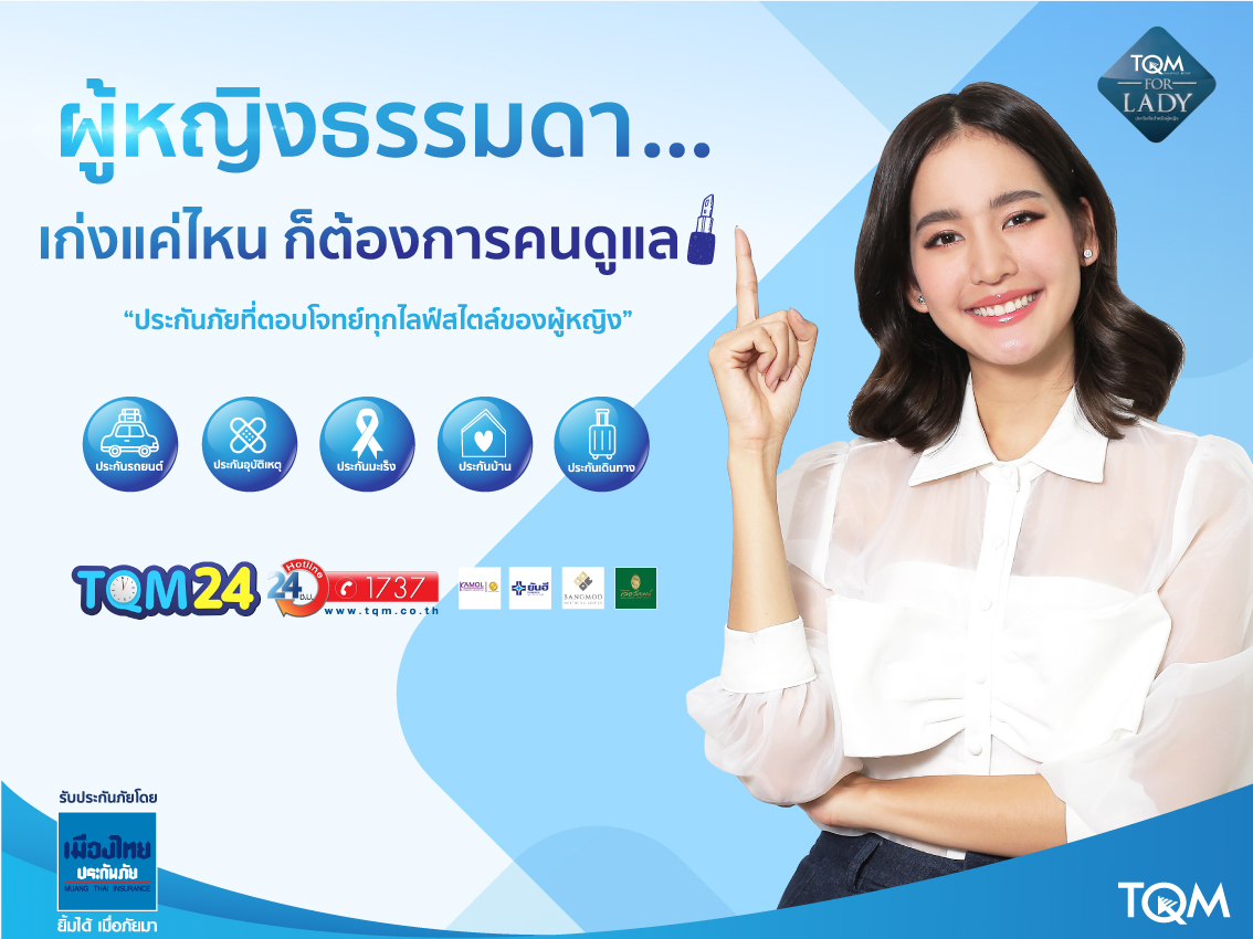 ลูกค้าสามารถซื้อกรมธรรม์ในแคมเปญ For Lady ได้ตลอด 24 ชั่วโมง ผ่านระบบ TQM 24 Smart Services ทาง Line Official “TQM Insurance Broker” หรือเฟซบุกTQM Insurance Broker เว็บไซต์ www.tqm.co.th หรือโทร 1737 รวมทั้งสาขาทีคิวเอ็มทั่วประเทศ ดร.นภัสนันท์ กล่าวทิ้งท้าย ![]()