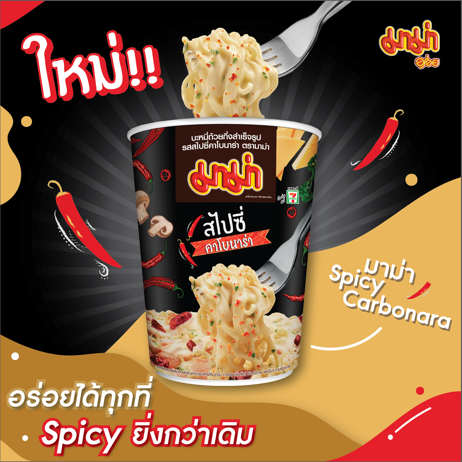 24 สิงหาคม 2563 : บริษัท สหพัฒนพิบูล จำกัด (มหาชน) ส่งเมนูความแซ่บ “มาม่าคัพ Spicy Carbonara” อร่อยได้ทุกที่ Spicy กว่าเดิม เอาใจคนชอบรักเส้นด้วยเส้นที่หนานุ่มกว่าเดิม ผสานกับรสชาติคาโบนาร่าที่สไปซี่เข้มข้นขึ้นอย่างลงตัว สำหรับใครที่ชอบรสชาติจัดจ้านรับรองว่าถูกปากถูกใจ อดใจไม่ไหวอย่างแน่นอน รีบไปลิ้มลองความอร่อยกันได้แล้ววันนี้ที่ร้าน 7-11 ทุกสาขา ในราคา 15 บาท ![]()