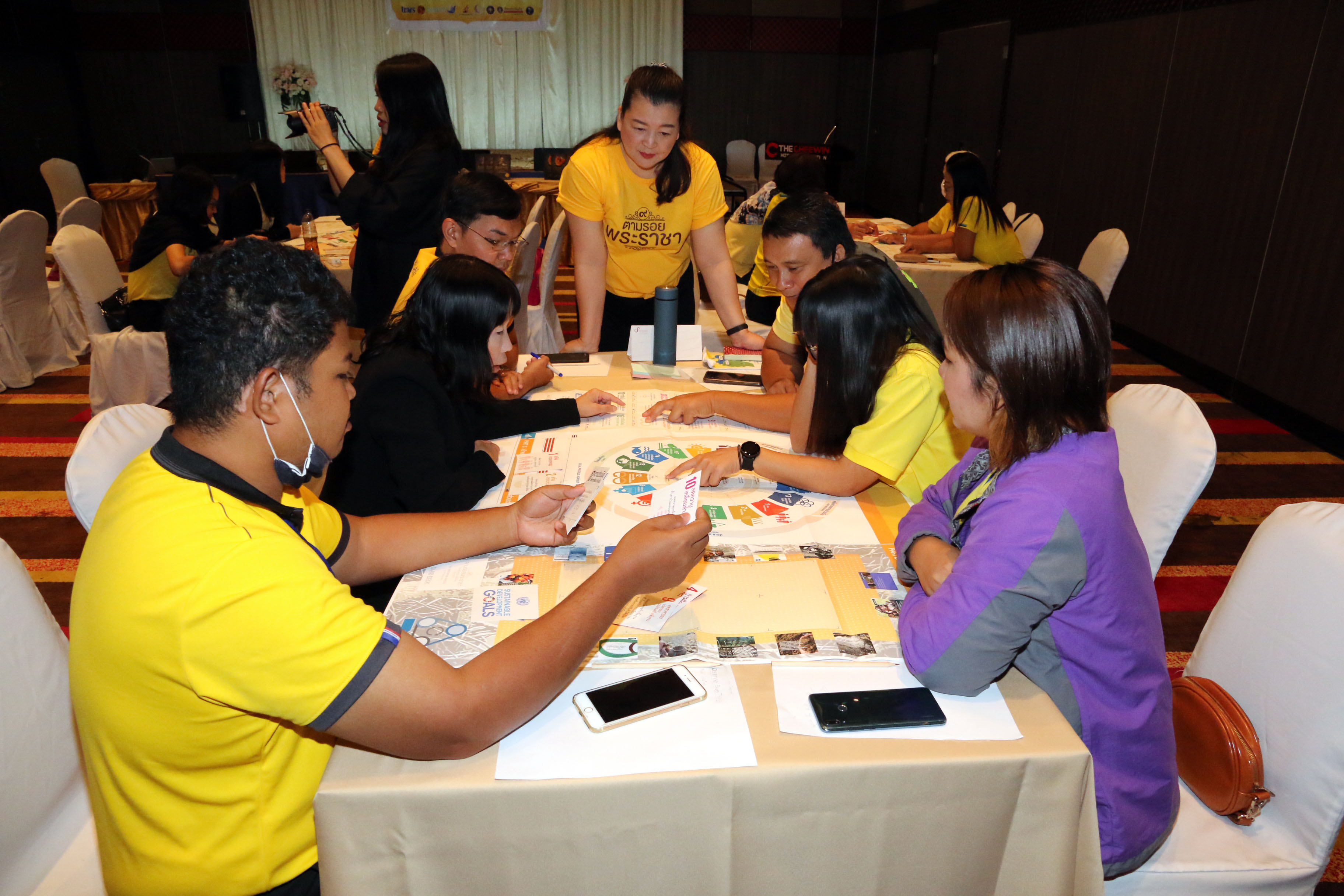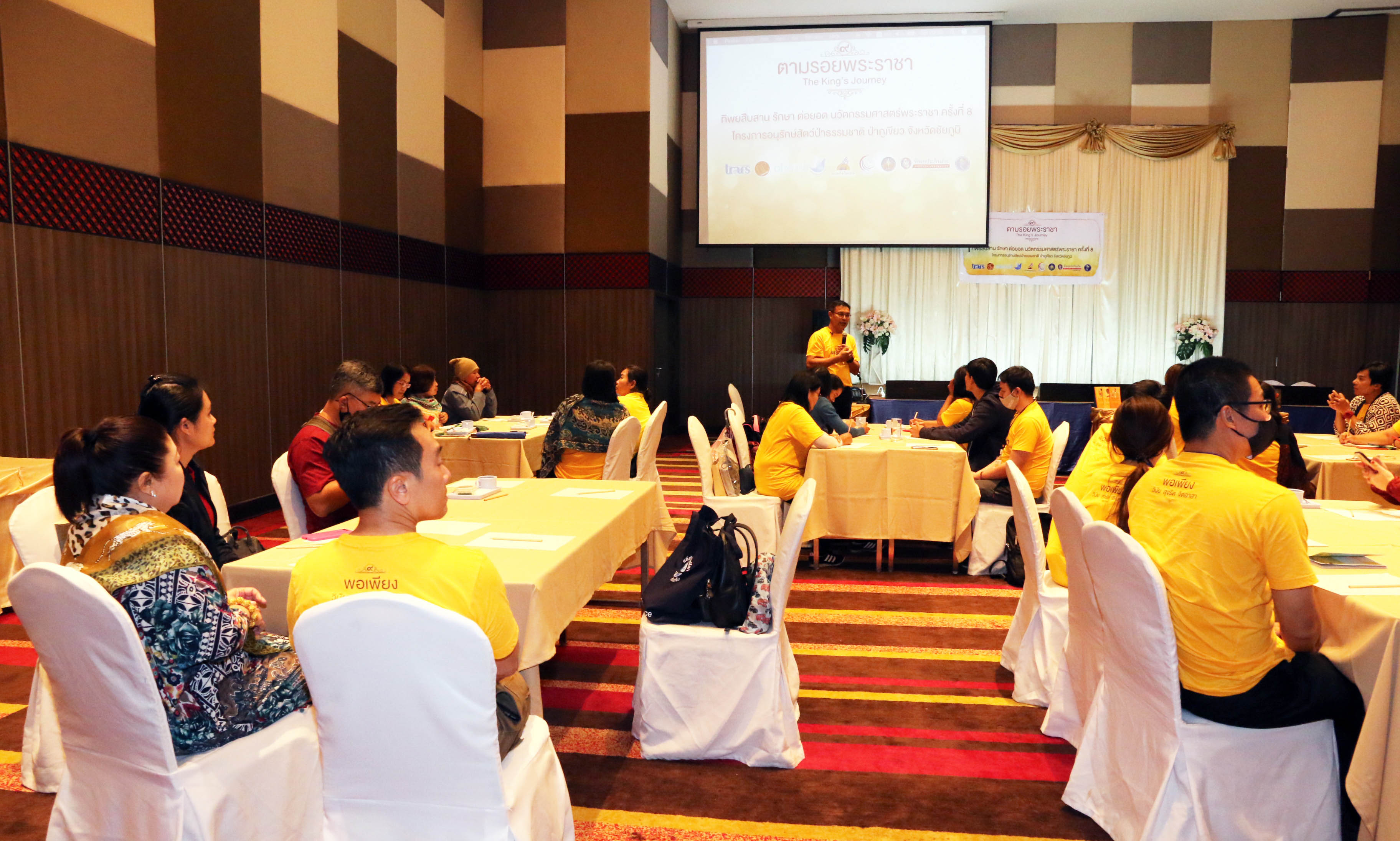 หลังจากการลงพื้นที่เรียนรู้ด้วยการปฏิบัติแล้ว คณะครูได้ทำกิจกรรมถอดบทเรียน นำโดยนายอดุลย์ ดาราธรรม นายกสมาคมนักเรียนเก่า AFS ประเทศไทย ผ่านเกมกระดานสื่อการเรียนรู้ 3 แบบ ได้แก่ “Game of Our Nation” ที่สอดแทรกคุณธรรม 4 ประการ คือ พอเพียง วินัย สุจริต จิตอาสา , “9 ตามรอยนวัตกรรมของพ่อ ศาสตร์พระราชาสู่การพัฒนาที่ยั่งยืนระดับสากล” ถอดบทเรียนและต่อยอดสร้างสรรค์เป็นนวัตกรรมจากกิจกรรมตามรอยพระราชา และ “The King’s Journey Learn English an Example of an Invention” เรียนรู้ภาษาอังกฤษจากหนังสือชุด King Bhumibol Adulyadej of Thailand ซึ่งคณะครูอาจารย์สามารถนำนวัตกรรมการเรียนรู้ไปต่อยอดการเรียนการสอนสำหรับเยาวชนต่อไป ![]()