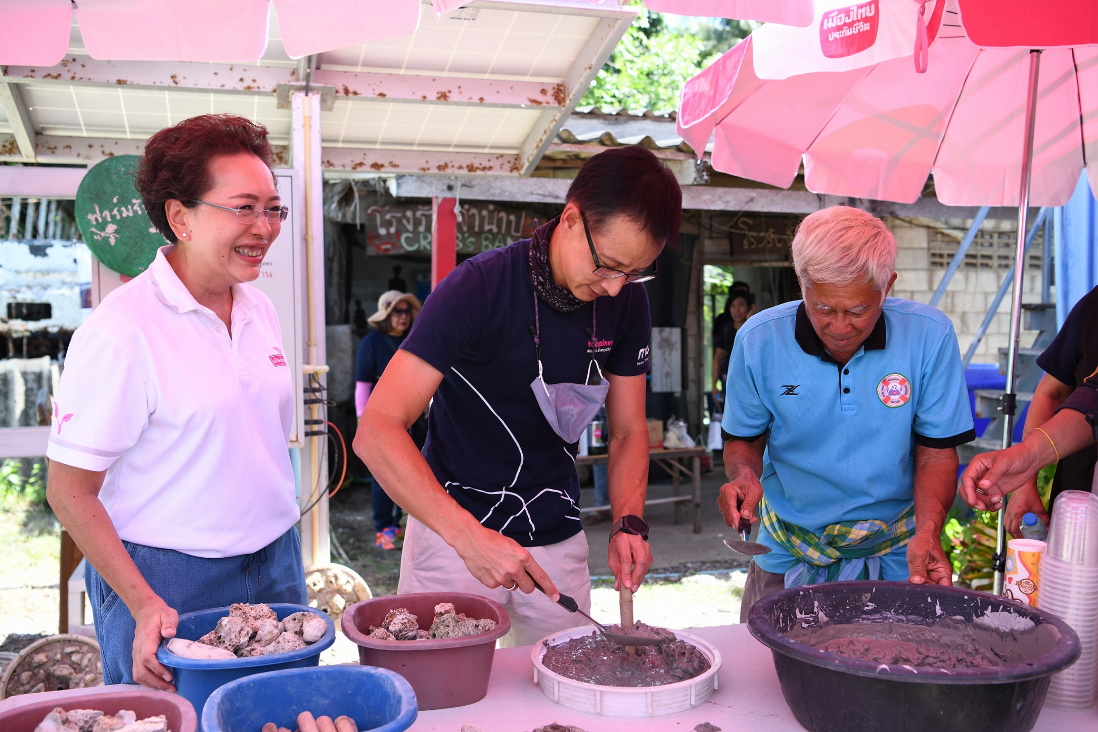 การจัดกิจกรรมในครั้งนี้ ได้รับความร่วมมือจากชาวบ้านในชุมชนบ้านสะพลี อ.ปะทิว จ.ชุมพร ศูนย์วิจัยและพัฒนาประมงอ่าวไทยตอนกลางชุมพร ประมงอำเภอปะทิว และพนักงานเมืองไทยประกันชีวิต ร่วมกันจัดทำกิจกรรมซั้งบ้านปลา(ซั้ง) และเค้กปะการัง ซึ่งซั้งเป็นภูมิปัญญาชาวบ้านที่มีมาแต่อดีต ทำจากวัสดุที่ย่อยสลายตามธรรมชาติ เพื่อเป็นแหล่งอนุบาลและที่อยู่อาศัยของสัตว์น้ำบริเวณชายฝั่ง