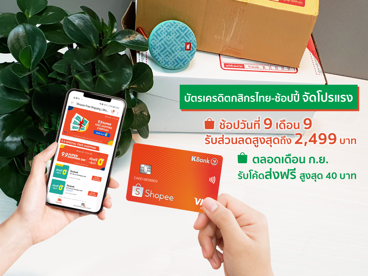 3 กันยายน 2563 : บัตรเครดิตกสิกรไทย-ช้อปปี้ ออกโปรโมชั่นให้ลูกค้าได้เฮ กับแคมเปญจัดหนัก “ช้อปปี้ 9.9 ซูเปอร์ ช้อปปิ้ง เดย์” (Shopee 9.9 Super Shopping Day) วันที่ 9 เดือน 9 รับส่วนลดเพิ่มสูงสุด 2,499 บาท เมื่อ ช้อปขั้นต่ำ 7,999 บาท และรับโค้ดส่งฟรีไม่มีขั้นต่ำ ตลอดเดือนกันยายนนี้ เงื่อนไขเป็นไปตามที่บริษัทฯ กำหนด ข้อมูลเพิ่มเติมโปรโมชัน หรือสนใจสมัครบัตรเครดิตกสิกรไทย-ช้อปปี้ กดได้ที่ลิงค์นี้ https://kbank.co/2XBU5Wy ![]()