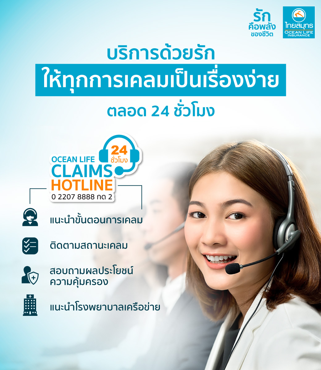 OCEAN LIFE ไทยสมุทร ตอบโจทย์ชีวิตในรูปแบบชีวิตวิถีใหม่ (New Normal) ด้วยช่องทางการติดต่อรับบริการออนไลน์ที่หลากหลาย ไม่ว่าจะเป็น OCEAN CLUB APPLICATION / LINE : @oceanlife / Facebook : oceanlifepage และเว็บไซต์ www.ocean.co.th หรือ ติดต่อศูนย์ลูกค้าสัมพันธ์ โทร 0 2207 8888