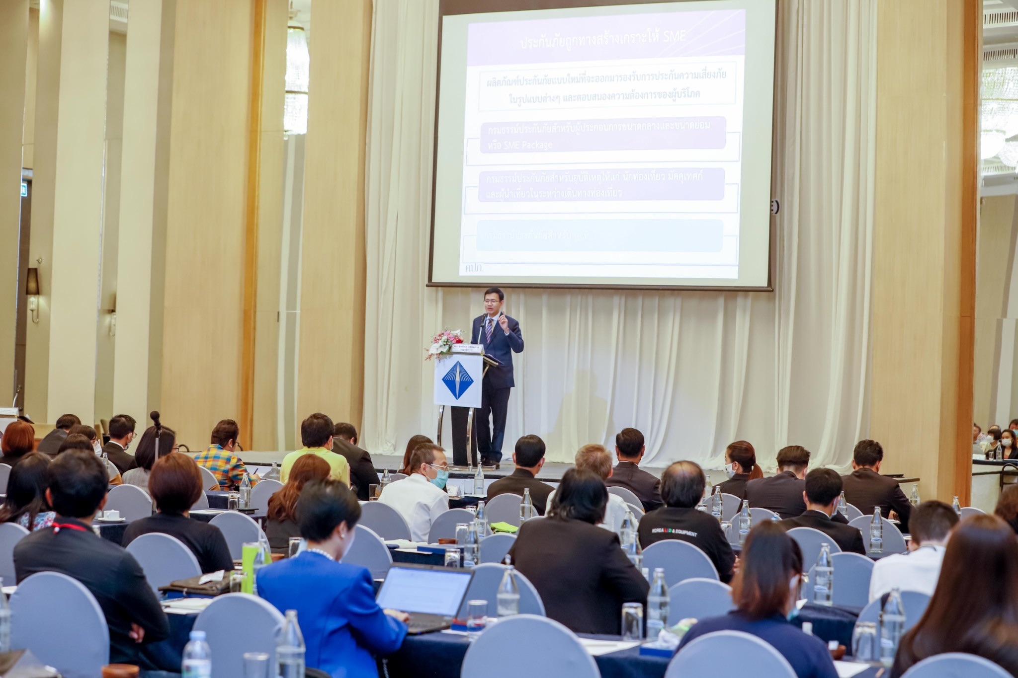 ในโอกาสนี้เลขาธิการ คปภ. ได้บรรยายพิเศษในหัวข้อ “ประกันภัยถูกทางสร้างเกราะให้ SME” ตอนหนึ่งว่า ผู้ประกอบการ SME จัดเป็นกลุ่มธุรกิจที่มีความเปราะบางต่อสถานการณ์การแพร่ระบาดของโควิด-19 เนื่องจากส่วนใหญ่ไม่ได้มีสายป่านธุรกิจที่ยาว จึงจำเป็นต้องมีเครื่องมือที่เหมาะสมในการเพิ่มความคุ้มกันจากความเสี่ยงภัย และเนื่องจากสัญญาประกันภัยมีความคุ้มครองที่หลากหลาย โดยเฉพาะกรมธรรม์ประกันภัยที่ใช้ในการประกอบธุรกิจ จึงถือเป็นกลไกที่สำคัญในการบริหารจัดการความเสี่ยงให้กับกลุ่มธุรกิจ SME ซึ่งจำเป็นต้องมีความรู้ความเข้าใจเกี่ยวกับความคุ้มครอง เงื่อนไข และข้อยกเว้นตามกรมธรรม์ประกันภัย เพื่อจะได้เลือกใช้เครื่องมือนี้ในการจัดการกับความเสี่ยงภัยได้อย่างเหมาะสม