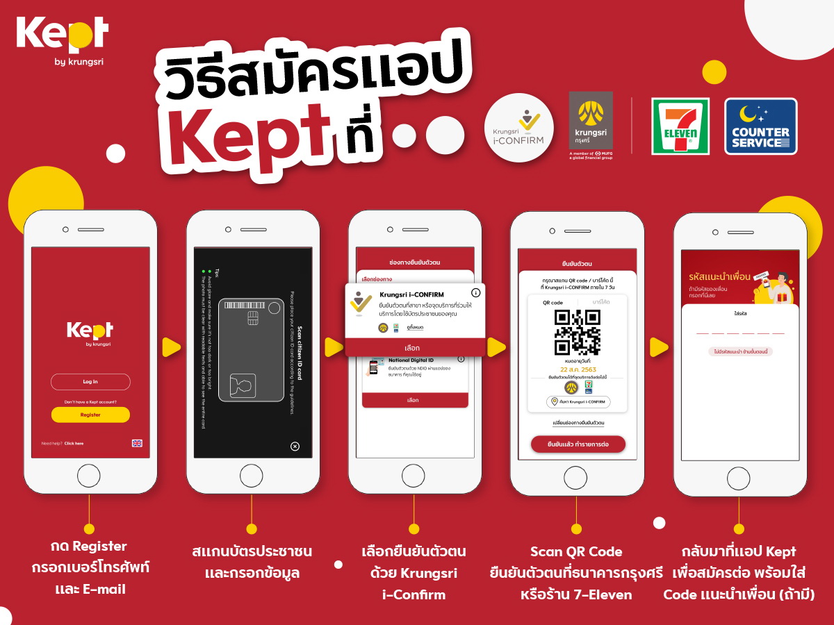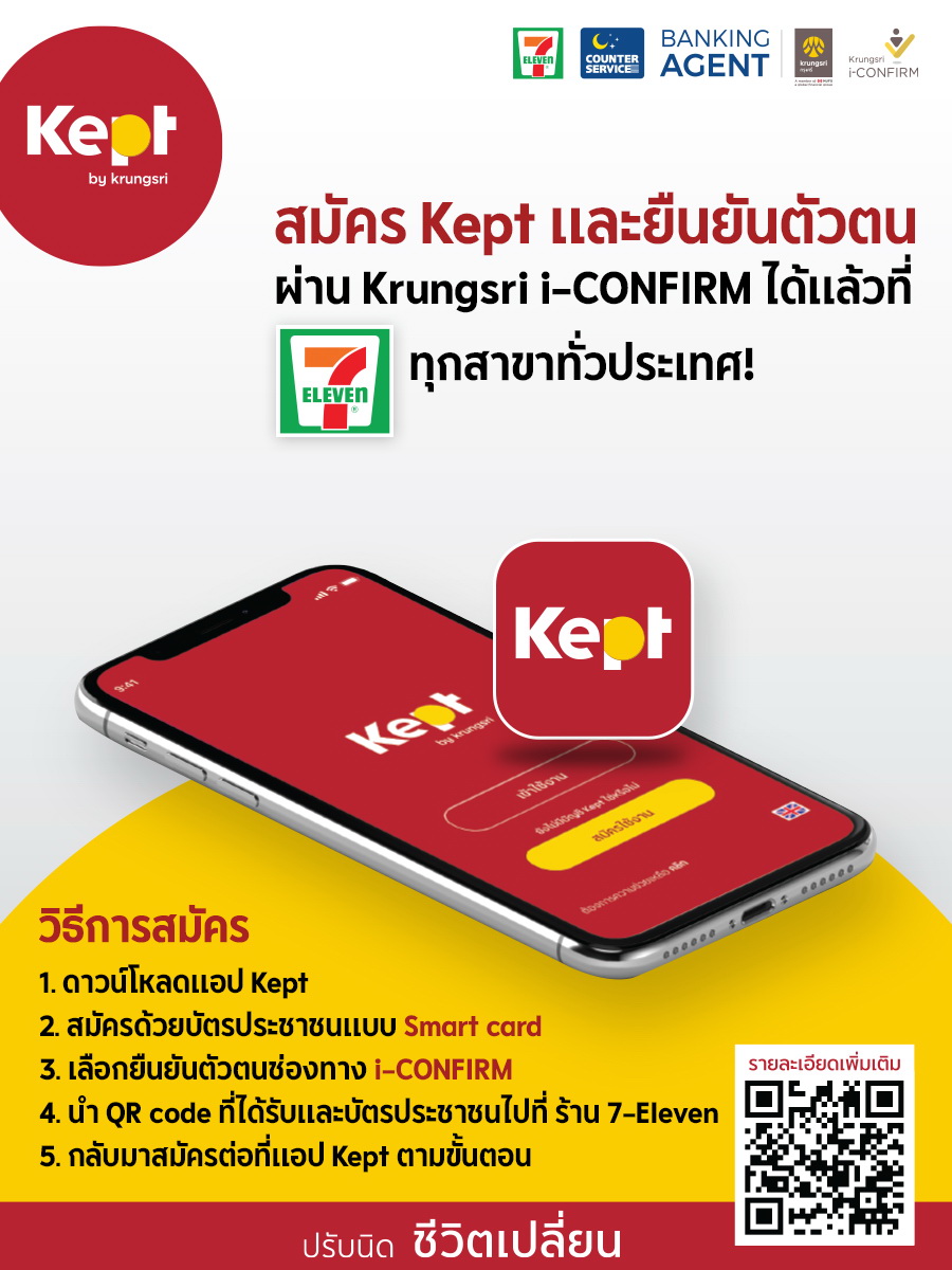 15 กันยายน 2563 : Kept by krungsri นวัตกรรมบริหารเงินแพลตฟอร์มใหม่ ชวนลูกค้าเริ่มเก็บออมเงินผ่านแอปพลิเคชั่น Kept สมัครได้ง่ายและสะดวกกว่าเดิมด้วยการเพิ่มช่องทางการยืนยันตัวตนผ่าน Krungsri i-Confirm ที่เคาน์เตอร์เซอร์วิสในร้าน 7-Eleven ทุกสาขาทั่วประเทศ สมัครแล้วโอนเงินเข้าบัญชีขั้นต่ำ 1,000 บาท ภายใน 7 วัน จะได้รับบัตรกำนัล e-Coupon สตาร์บัคส์ มูลค่า 100 บาท ตั้งแต่วันนี้ถึง 30 กันยายน 2563 ผ่านอีเมลที่ลงทะเบียนไว้