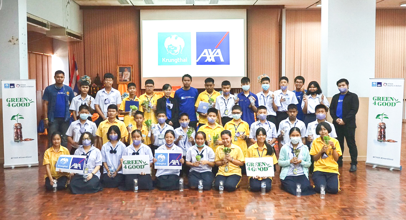 18 กันยายน 2563 : บมจ.กรุงไทย-แอกซ่า ประกันชีวิต ร่วมกับมูลนิธิครอบครัวพอเพียง จัดกิจกรรม “Green4Good ปี 3” ครั้งที่ 21 ณ โรงเรียนสุรศักดิ์มนตรี ซึ่งเป็นโครงการที่ให้ความรู้ ความเข้าใจพื้นฐานด้านการออมอย่างถูกต้องแก่เยาวชนไทย พร้อมทั้งสร้างความตระหนักรู้ในการให้ความสำคัญกับสุขภาพผ่าน “การปลูกผักไฮโดรโปนิกส์” และการใส่ใจสิ่งแวดล้อม ผ่านการใช้วัสดุรีไซเคิลในการปลูกผัก โครงการดังกล่าวเริ่มต้นขึ้นในปี 2560 และได้ให้ความรู้แก่นักเรียนไปแล้วกว่า 1,500 คนจาก 20 โรงเรียน ซึ่งสอดคล้องกับความเป็นผู้นำด้านบริษัทประกันที่ใส่ใจสิ่งแวดล้อม หรือ Green Insurer ![]()