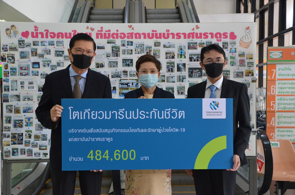 18 กันยายน 2563 : โตโยมาเกะ คูวาตะ CEO พร้อมด้วย สมโพชน์ เกียรติไกรวัล ประธานที่ปรึกษาสำนักกรรมการผู้จัดการและสายงานตัวแทน ได้มอบเงินบริจาคแก่สถาบันบำราศนราดูร โดยมี พญ. ศรัณยา ประสิทธิศิริกุล รองผู้อำนวยการกลุ่มบริการทางการแพทย์ เป็นผู้รับมอบเงินจำนวน 484,600 บาท ตามโครงการ “โตเกียวมารีนประกันชีวิต ร่วมสู้ภัยโควิด-19” ซึ่งลูกค้าที่ซื้อประกันชีวิตผ่านช่องทางตัวแทนและได้รับการอนุมัติระหว่างวันที่ 10 กรกฏาคม – 10 สิงหาคม 2563 ได้ร่วมบริจาคเงิน 200 บาทต่อ 1 กรมธรรม์ โดยโตเกียวมารีนโฮลดิ้งได้ร่วมสมทบเงินบริจาคในครั้งนี้ด้วย ![]()