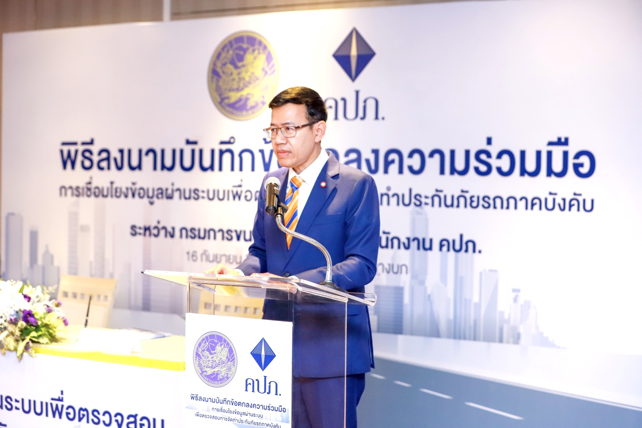เลขาธิการ คปภ. กล่าวว่า การลงนามข้อตกลงความร่วมมือ (MOU) การเชื่อมโยงข้อมูลผ่านระบบ เพื่อตรวจสอบการจัดทำประกันภัยรถภาคบังคับในครั้งนี้ เป็นการบูรณาการร่วมกัน ระหว่างกรมการขนส่งทางบก กับสำนักงาน คปภ. เพื่ออำนวยความสะดวกในการตรวจสอบการจัดทำประกันภัย พ.ร.บ. ให้กับประชาชนผู้ใช้บริการชำระภาษีรถมากขึ้น โดยนำเทคโนโลยีมาใช้ในการแลกเปลี่ยนข้อมูล เพื่อป้องกันการละเมิดข้อมูลส่วนบุคคล และปกป้องความเป็นส่วนตัวของเจ้าของข้อมูล รวมถึงจะมีการแลกเปลี่ยนความรู้ความเข้าใจระหว่างสองหน่วยงาน