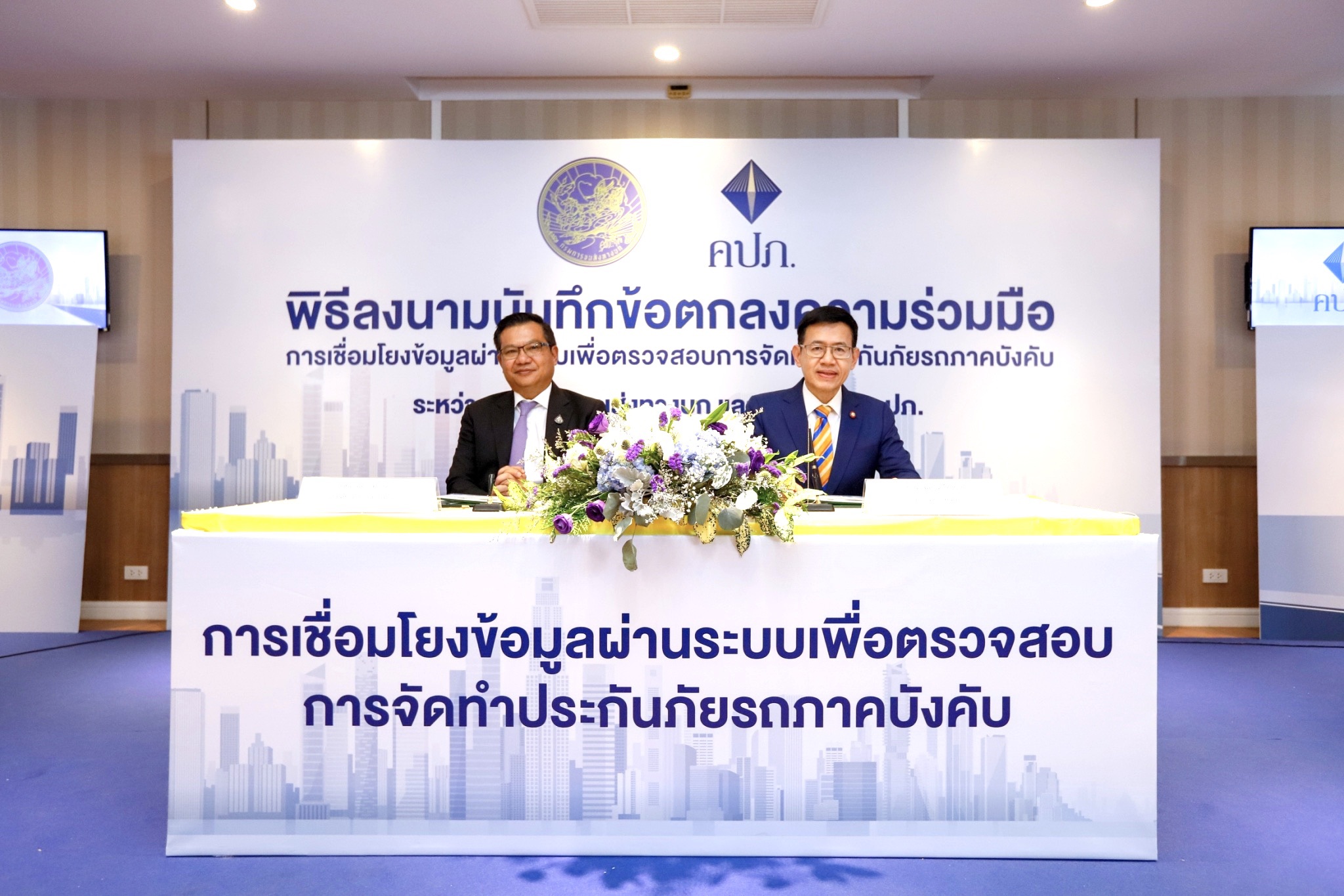 18 กันยายน 2563 : ดร. สุทธิพล ทวีชัยการ เลขาธิการคณะกรรมการกำกับและส่งเสริมการประกอบธุรกิจประกันภัย (เลขาธิการ คปภ.) เปิดเผยว่า สำนักงานคณะกรรมการกำกับและส่งเสริมการประกอบธุรกิจประกันภัย (สำนักงาน คปภ.) ได้บูรณาการร่วมกับ กรมการขนส่งทางบก ลงนามบันทึกข้อตกลง (MOU) เมื่อวันที่ 16 กันยายน 2563 ณ ห้องประชุม 1 อาคาร 1 ชั้น 3 กรมการขนส่งทางบก โดยมี นายจิรุตม์ วิศาลจิตร อธิบดีกรมการขนส่งทางบก ร่วมในพิธีลงนามบันทึกข้อตกลงความร่วมมือ (MOU) การเชื่อมโยงข้อมูล ผ่านระบบเพื่อตรวจสอบการจัดทำประกันภัยรถภาคบังคับ โดยพัฒนาระบบเทคโนโลยีสารสนเทศร่วมกันเพื่อใช้ในการตรวจสอบการจัดทำประกันภัยรถตามกฎหมายว่าด้วยการคุ้มครองผู้ประสบภัยจากรถให้มีความถูกต้องและคุ้มครองสิทธิให้แก่ประชาชน