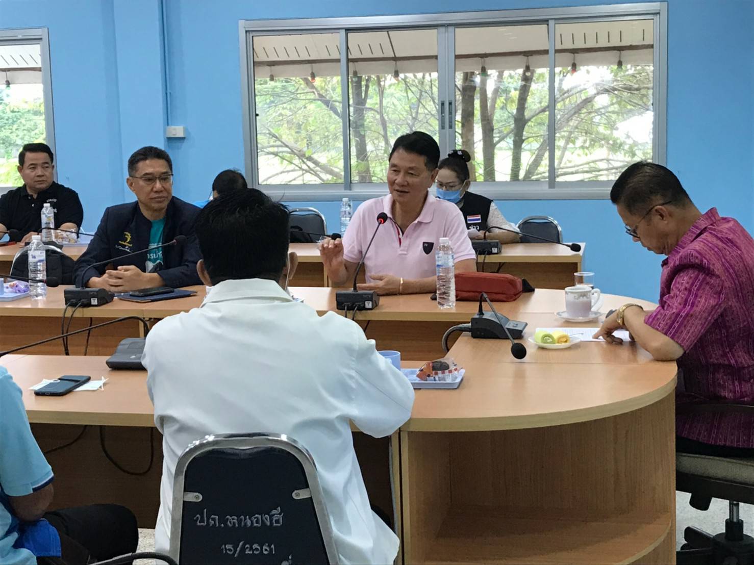 20 กันยายน 2563 : อานนท์ วังวสุ นายกสมาคมประกันวินาศภัยไทย พร้อมด้วยคณะกรรมการกองทุนประกันภัยพืชผล และคณะผู้บริหารสมาคมฯ ประชุมหารือติดตามโครงการธนาคารน้ำใต้ดิน “หนองฮีโมเดล” ร่วมกับ ดร.รณวริทธิ์ ปริยฉัตรตระกูล สมาชิกวุฒิสภา จังหวัดร้อยเอ็ด ดร.ประจักร์ บุญกาพิมพ์ ประธานสภาเกษตรกร จังหวัดร้อยเอ็ด ปลัดอำเภอหนองฮี องค์การบริหารส่วนตำบลดูกอึ่ง และ ตำบลเด่นราษฎร์และผู้นำชุมชนทั้ง 2 ตำบล พร้อมด้วย ดร.เร่งรัด สุทธิสน ผู้อำนวยการสถาบันน้ำนิเทศศาสนคุณ เพื่อรับฟังความคิดเห็นและลงพื้นที่ติดตามผลโครงการ ร่วมกับหน่วยงานที่เกี่ยวข้องในพื้นที่ ณ ที่ว่าการอำเภอหนองฮี จังหวัดร้อยเอ็ด