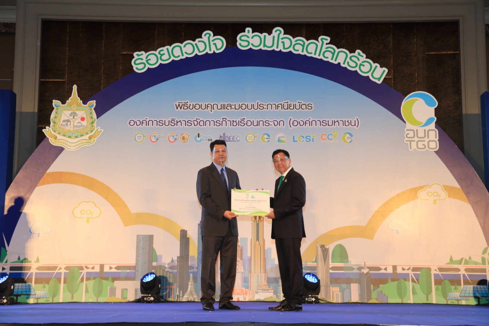 22 กันยายน 2563 : เอไอเอ ประเทศไทย นำโดย นายปกป้อง ยินดีผล (ซ้าย) ผู้อำนวยการฝ่ายอสังหาริมทรัพย์เป็นตัวแทนเข้ารับประกาศเกียรติคุณในงาน “ร้อยดวงใจ ร่วมใจลดโลกร้อน” ประจำปี 2563 ซึ่งจัดขึ้นเพื่อเชิดชูเกียรติแก่ผู้ประกอบการและภาคส่วนต่างๆ ที่เป็นตัวอย่างที่ดีในการบริหารจัดการและลดการปล่อยก๊าซเรือนกระจกภายในประเทศ และร่วมดำเนินโครงการสนับสนุนกิจกรรมลดก๊าซเรือนกระจก (LESS)