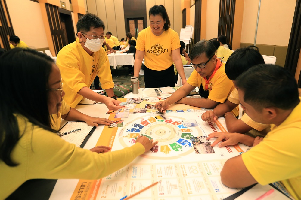 ซึ่งหลังจากการลงพื้นที่เรียนรู้ด้วยการปฏิบัติแล้ว คณะครูได้ทำกิจกรรมถอดบทเรียน นำโดยนายอดุลย์ ดาราธรรม นายกสมาคมนักเรียนเก่า AFS ประเทศไทย ผ่านเกมกระดานสื่อการเรียนรู้ 3 แบบ ได้แก่ “Game of Our Nation” ที่สอดแทรกคุณธรรม 4 ประการ คือ พอเพียง วินัย สุจริต จิตอาสา , “9 ตามรอยนวัตกรรมของพ่อ ศาสตร์พระราชาสู่การพัฒนาที่ยั่งยืนระดับสากล” ถอดบทเรียนและต่อยอดสร้างสรรค์เป็นนวัตกรรมจากกิจกรรมตามรอยพระราชา และ “The King’s Journey Learn English an Example of an Invention” เรียนรู้ภาษาอังกฤษจากหนังสือชุด King Bhumibol Adulyadej of Thailand ซึ่งคณะครูอาจารย์สามารถนำนวัตกรรมการเรียนรู้ไปต่อยอดการเรียนการสอนสำหรับเยาวชนต่อไป ![]()