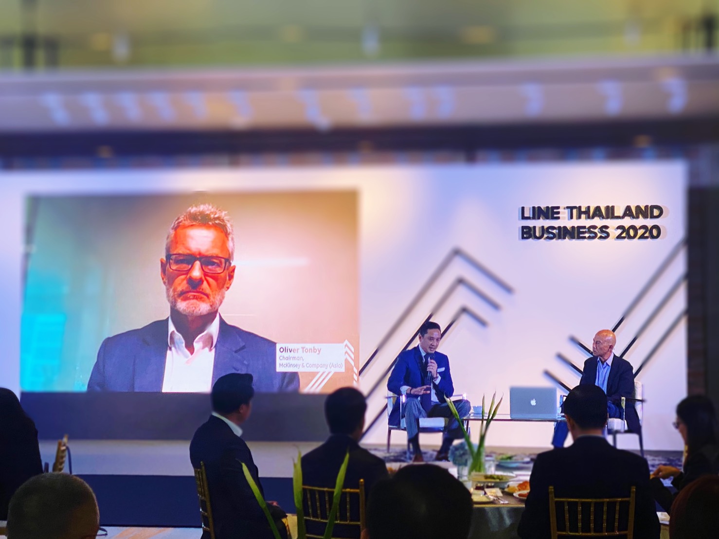 มร. โอลิเวอร์ ทอนบี ประธานกรรมการบริษัท McKinsey & Company’s Chairman (เอเชีย) กล่าวในงาน LINE THAILAND BUSINESS 2020: Exclusive CEO Talk ว่า “สถานการณ์วิกฤตทางเศรษฐกิจจากการระบาดของ โควิด-19 ทั่วโลก เป็นสถานการณ์ที่เลวร้ายสำหรับทุกประเทศก็จริง แต่ในวิกฤตมีโอกาสเสมอ สถานการณ์โควิด-19 กลายเป็นตัวเร่งการพัฒนาต่างๆ ให้เกิดขึ้น ไม่ว่าจะเป็นการเติบโตของอีคอมเมิร์ซที่เติบโตอย่างก้าวกระโดดในช่วงเกิดสถานการณ์โควิด-19 ตลอดจนการปรับตัวเข้าสู่สังคมไร้เงินสด (Contactless Payment) หรือแม้แต่เรื่องการศึกษาที่เราพูดถึง E-Learning กันมานาน แต่ไม่เกิดขึ้นจริงหรือเป็นที่นิยม ก็เกิดขึ้นในช่วงนี้ที่ทุกคนต้องมาเรียนผ่านอินเทอร์เน็ต ซึ่งจากสถานการณ์ดังกล่าวจะเห็นได้ว่า องค์กรที่มีการเตรียมตัวหรือปรับตัวมาสู่ดิจิทัลแล้ว ได้เปรียบมากกว่าองค์กรที่ยังไม่ได้ปรับตัวสู่ดิจิทัลอย่างมาก