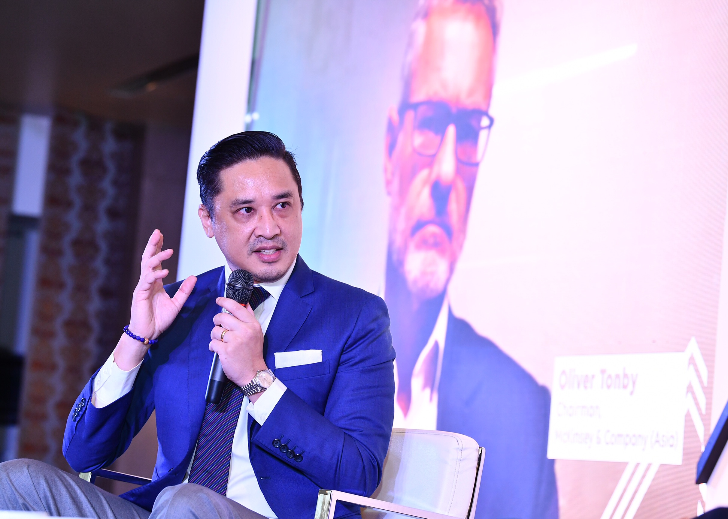 มร. โอลิเวอร์ ทอนบี เปิดเผยมุมมองและแนวทางการเติบโตของเอเชีย ที่เกิดจากการเพิ่มขึ้นของประชากรและการตอบรับเทคโนโลยีอย่างรวดเร็ว ในขณะที่ ดร. พิเชษฐ ฤกษ์ปรีชา ประธานเจ้าหน้าที่บริหาร LINE ประเทศไทย ร่วมวิเคราะห์ถึงทางรอดของธุรกิจไทยที่จะเดินหน้าต่อได้ด้วยกลุยทธ์ดิจิทัลที่ชัดเจนและความร่วมมือภาคเอกชน