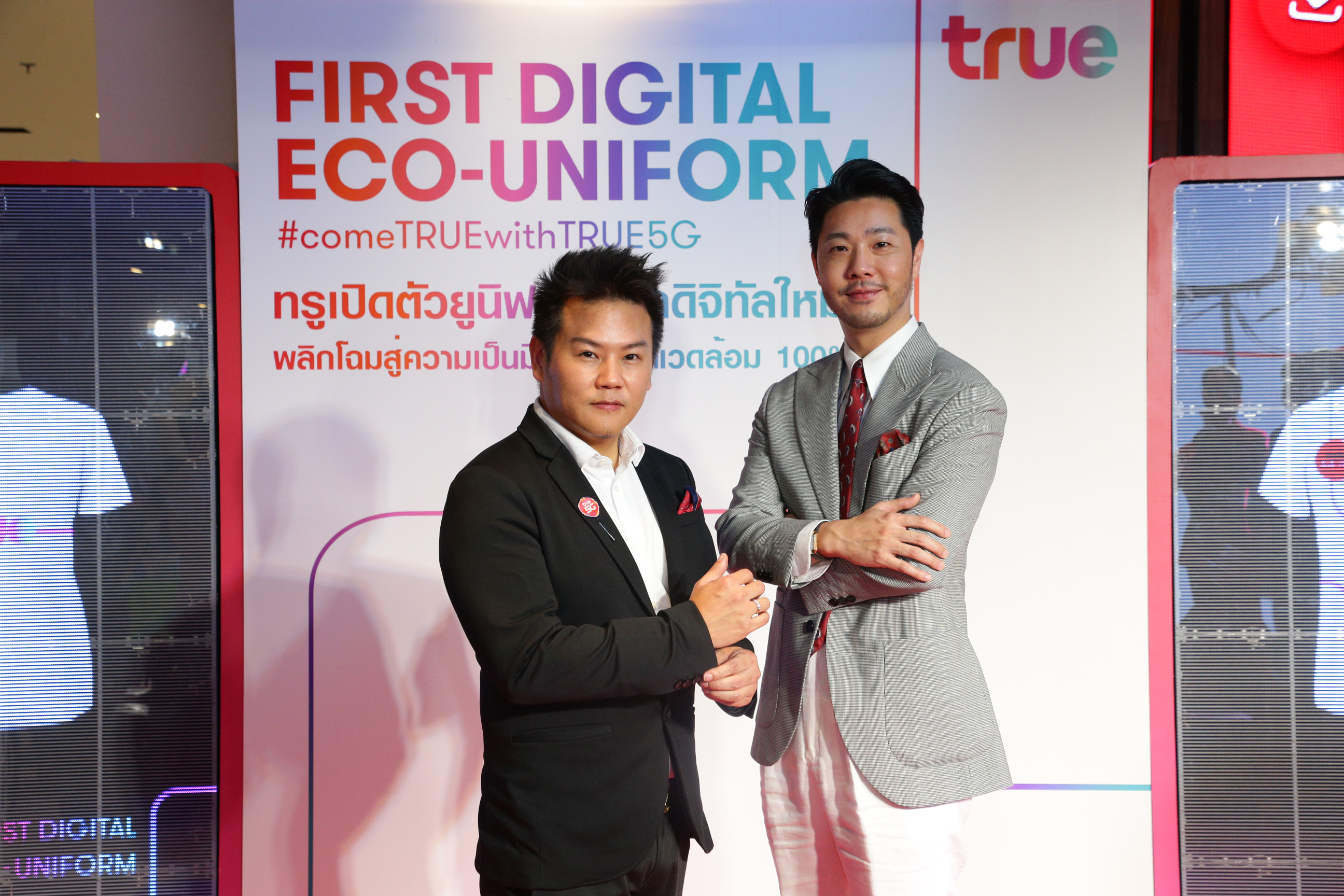 โดยดีไซน์เนอร์ชื่อดัง แบงค์-ปรีดากร เมธเกรียงชัย” แห่ง RAMS (The Personal Style Creatives) ดีไซเนอร์ไทยที่เข้าใจการสื่อสารแบรนด์ผ่านเสื้อผ้าเป็นอย่างดี โดยใช้เทคนิคการสกรีนไล่สี โลโก้ TRUE ลุคใหม่ด้วยมือทีละตัว ทำให้สีสันสดใสยาวนาน พร้อมเพิ่มไฮไลท์สุดล้ำ เชื่อมประสบการณ์ดิจิทัลให้ลูกค้าสแกน AR BADGE เข็มกลัดอัจฉริยะ บนยูนิฟอร์มผ่านแอป True5G AR เพื่อรับสิทธิพิเศษมากมาย