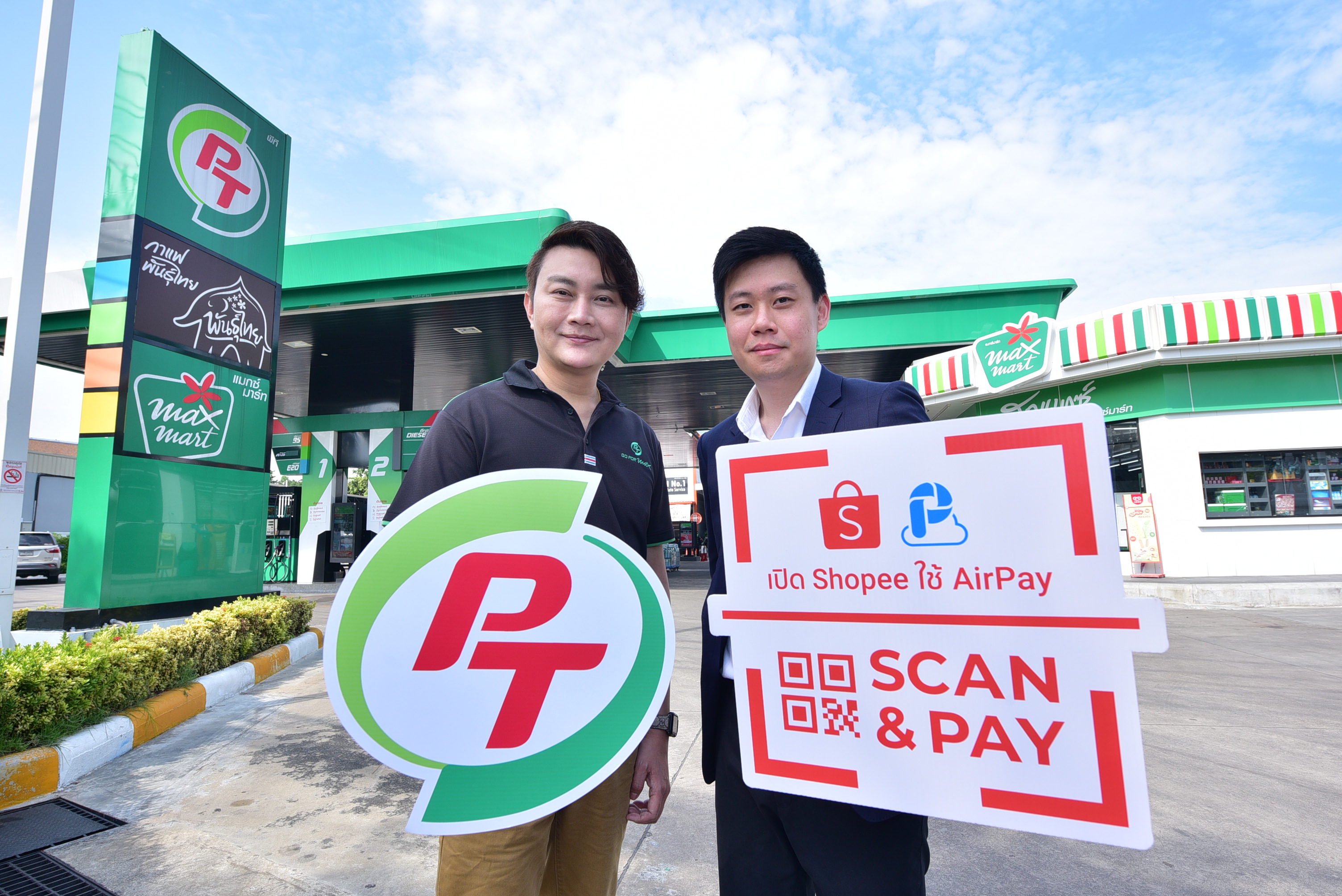27 ตุลาคม 2563 : บริษัท พีทีจี เอ็นเนอยี จำกัด (มหาชน) ผู้ให้บริการสถานีน้ำมันพีทีและผู้นำด้านบริการในธุรกิจพลังงานครบวงจรของไทย ร่วมกับ ‘AirPay (แอร์เพย์)’ ผู้ให้บริการด้านการชำระเงินผ่าน Mobile Wallet ชั้นนำจาก SeaMoney มุ่งพัฒนาระบบการชำระเงินค่าน้ำมันเชื้อเพลิงผ่าน Mobile Wallet เพียงเปิด ‘ช้อปปี้ ’ ใช้ ‘แอร์เพย์’ สแกนจ่ายค่าน้ำมันได้อย่างง่ายดายและรวดเร็ว เตรียมเปิดให้บริการในทุกสาขาทั่วกรุงเทพมหานครภายในเดือนพฤศจิกายนนี้ พร้อมยกทัพโปรโมชั่นเด็ดมากมาย อย่างการรับเงินคืนในรูปแบบ Shopee Coins สูงสุดถึง 50% สำหรับลูกค้าใหม่[1]